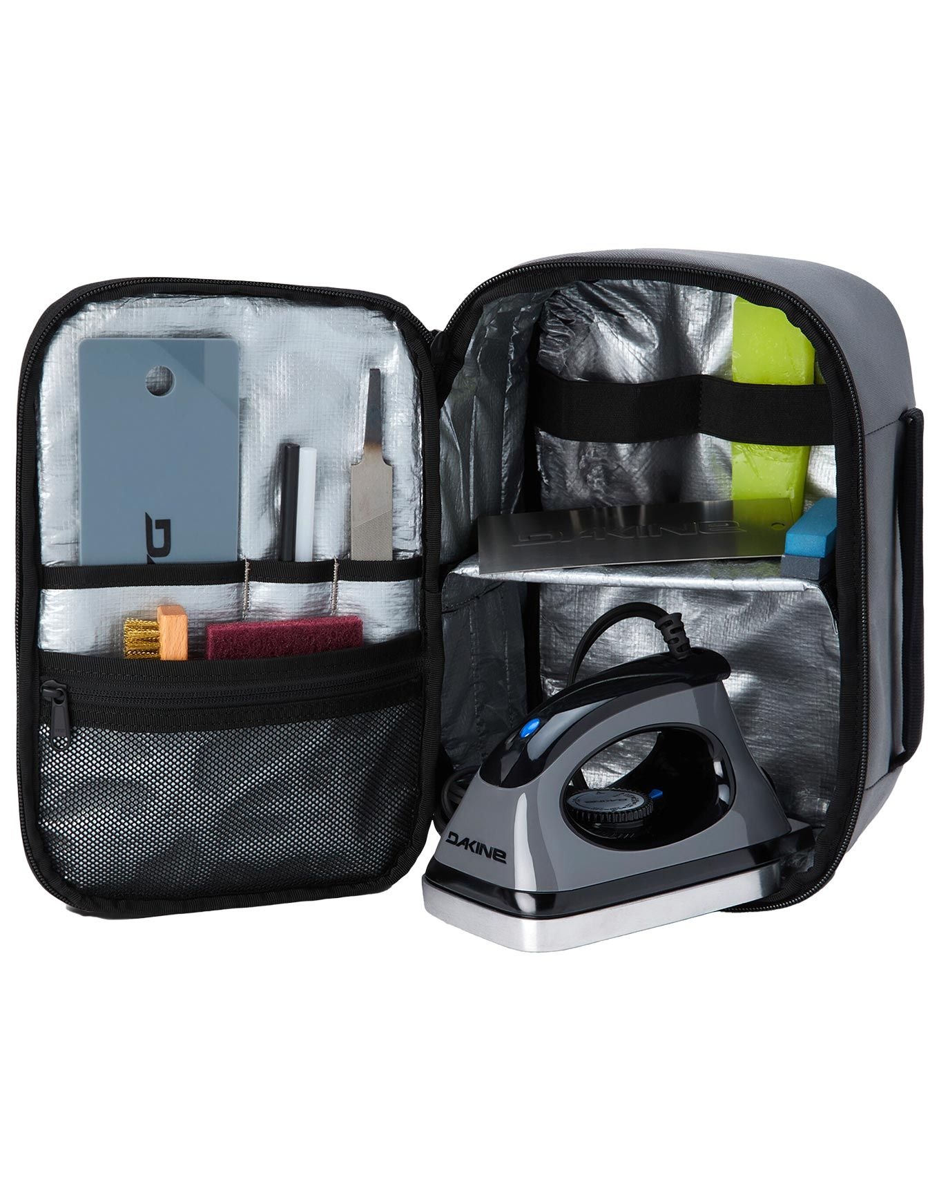 Le Super Tuning Kit Castlerock de Dakine regroupe fer réglable, outils de fartage, affûtage des carres, raclage et réparation pour l’entretien complet des skis et snowboards.