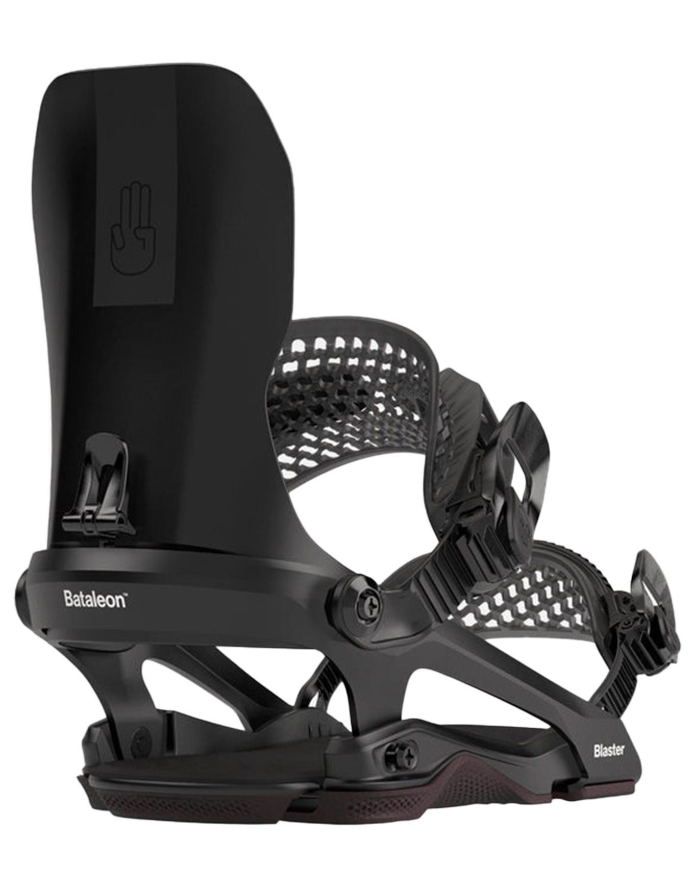 Bataleon Blaster FW Black : fixation snowboard homme tout-terrain réactive, avec highback ajustable, châssis FullWrap rigide et straps Kink pour soutien précis et liberté en freestyle.