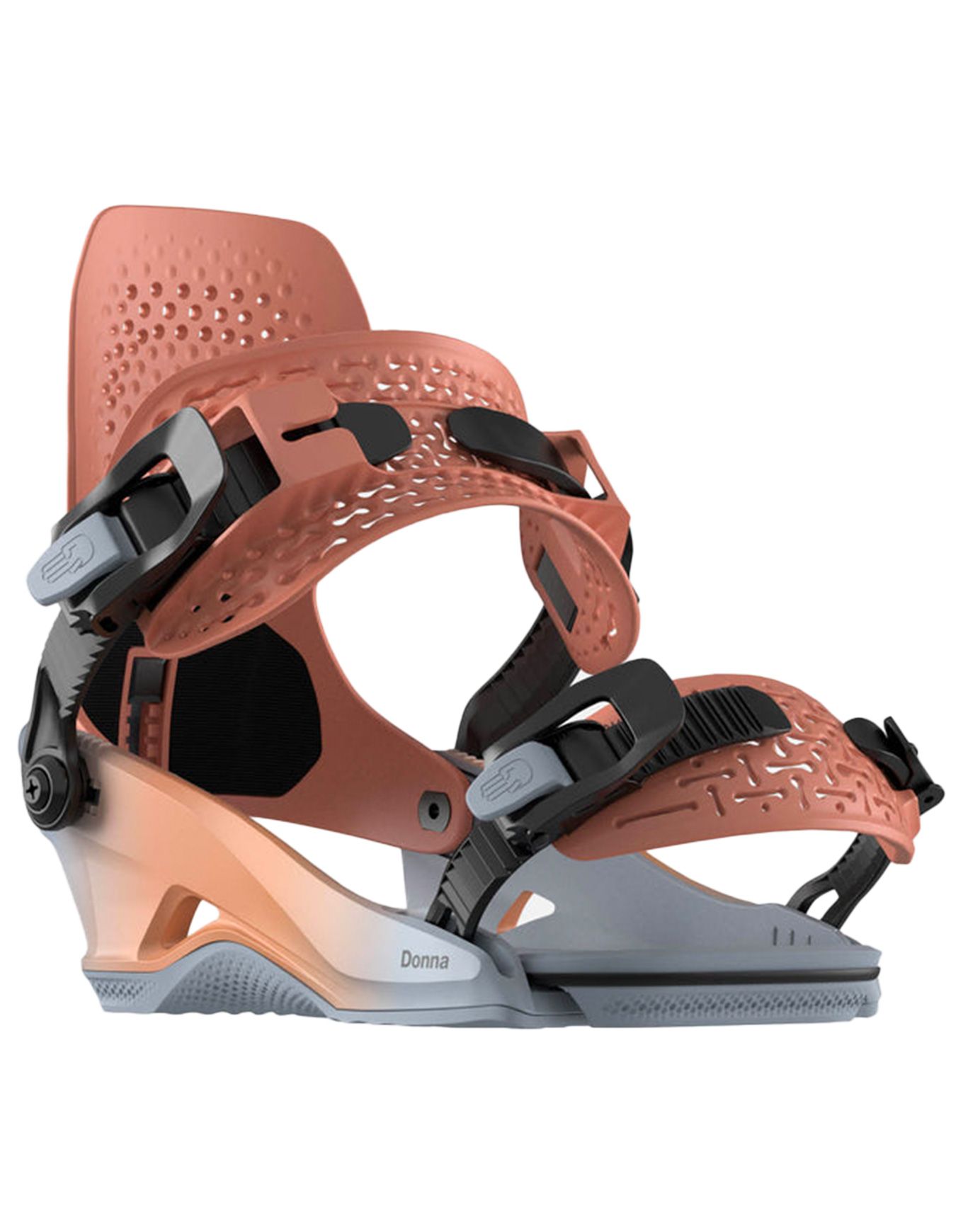 Polyvalente et confortable, la fixation de snowboard Donna HW Coral Fade est spécifiquement développée pour les pratiquantes. Destinée à toutes les conditions de terrain, elle convient aussi bien au freestyle qu’à l’all-mountain. Son Quaterback Highback, conçu pour la morphologie féminine, se distingue par son ajustement, son inclinaison modulable et sa rigidité optimale qui garantit un support remarquable dans les courbes.