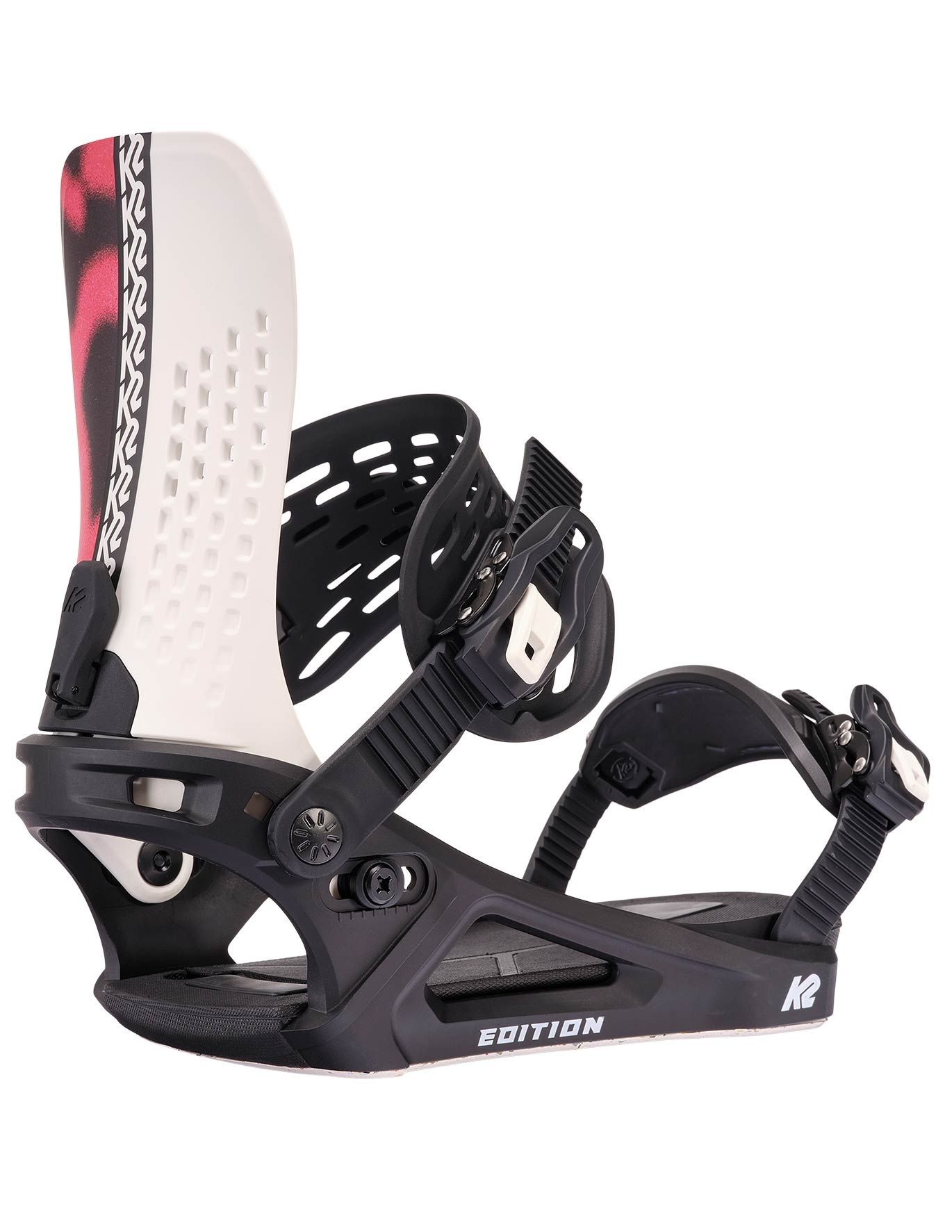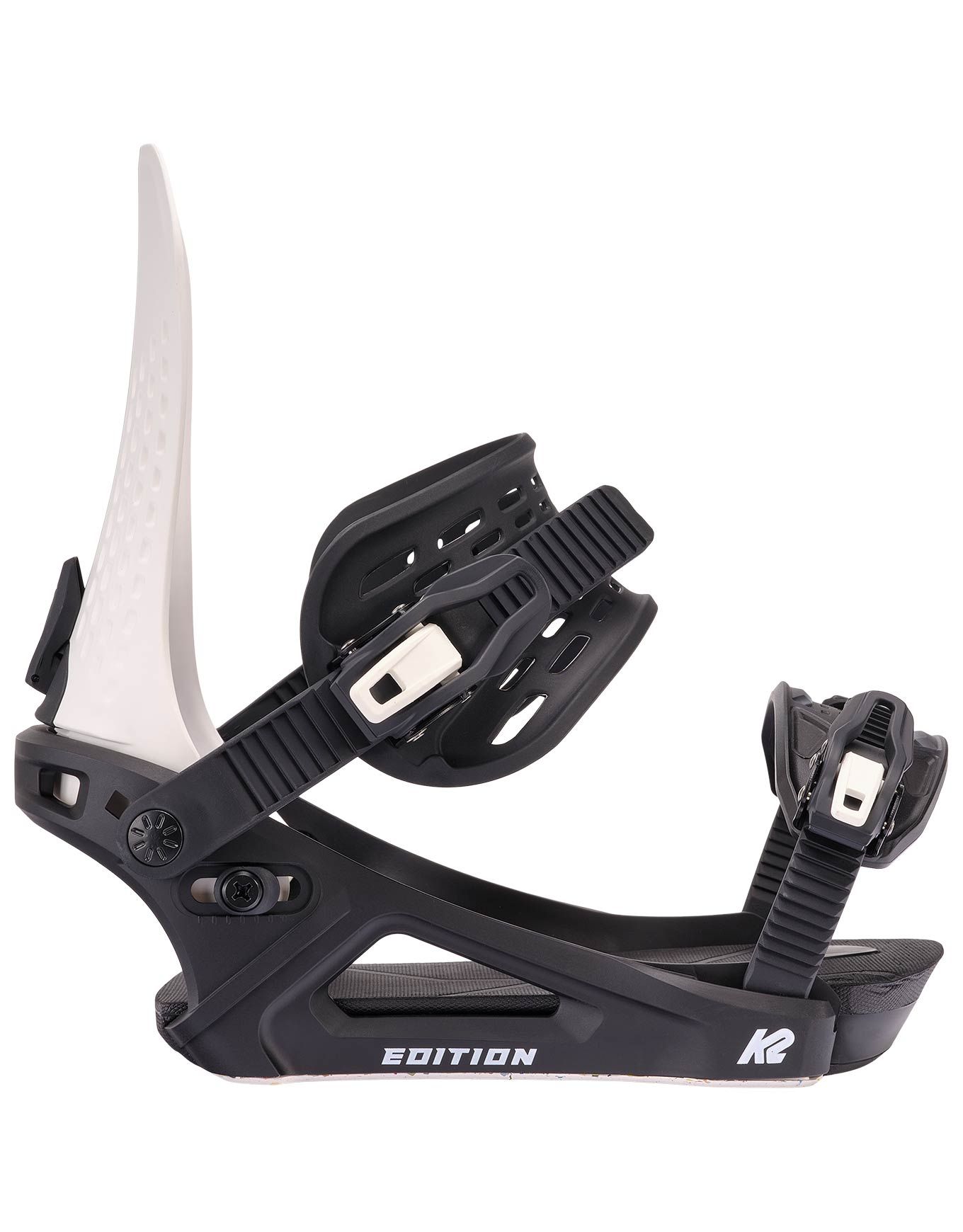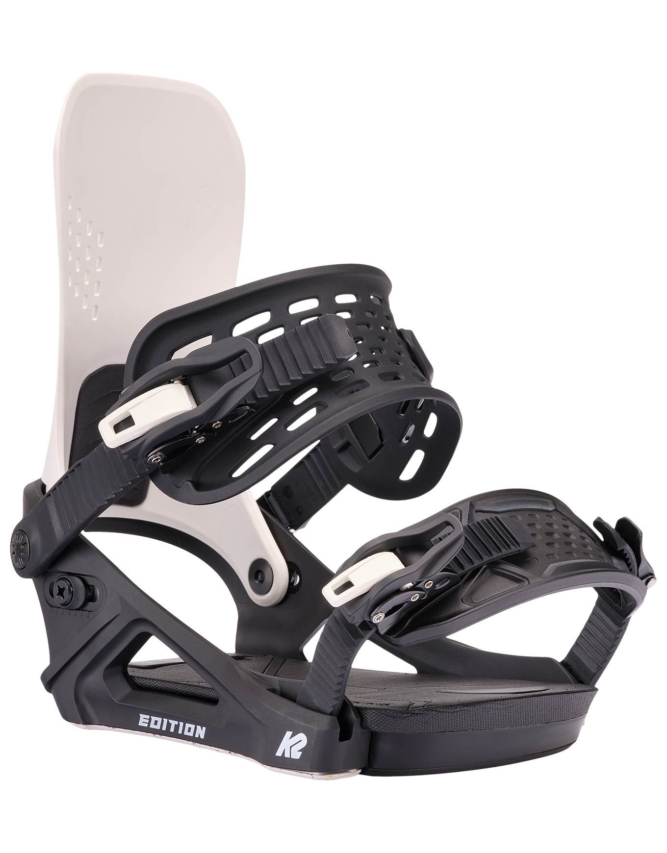 Fixation snowboard K2 Edition Risograph all-mountain/freestyle pour homme, niveau intermédiaire à confirmé, embase Module™ nylon fibre de verre, spoiler AM1 ricin, straps ankle/toe, semelle 3° Canted.