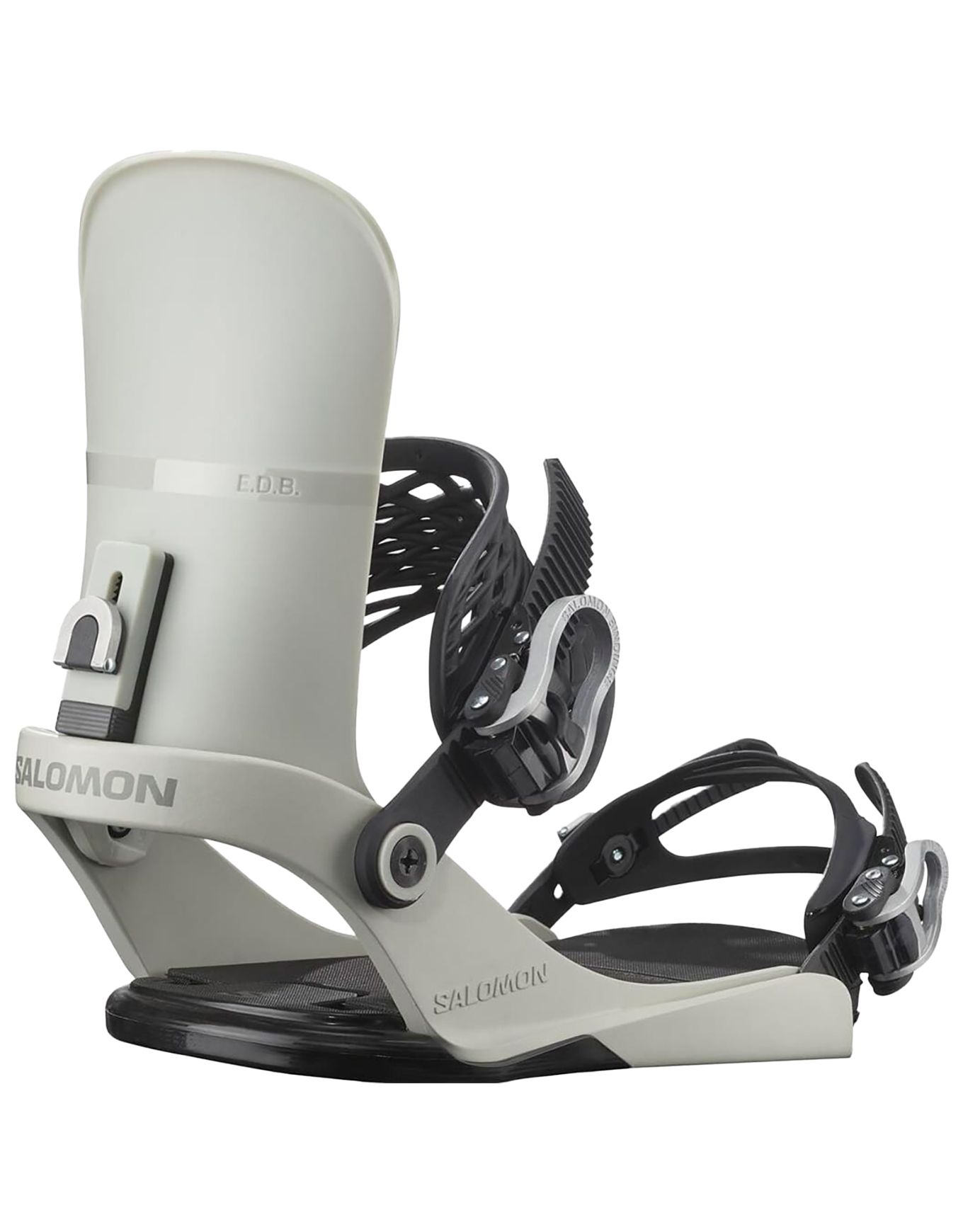 Conçue par Salomon pour les pratiquants intermédiaires, la fixation de snowboard Edb Grey se positionne comme un modèle all-mountain freestyle.
