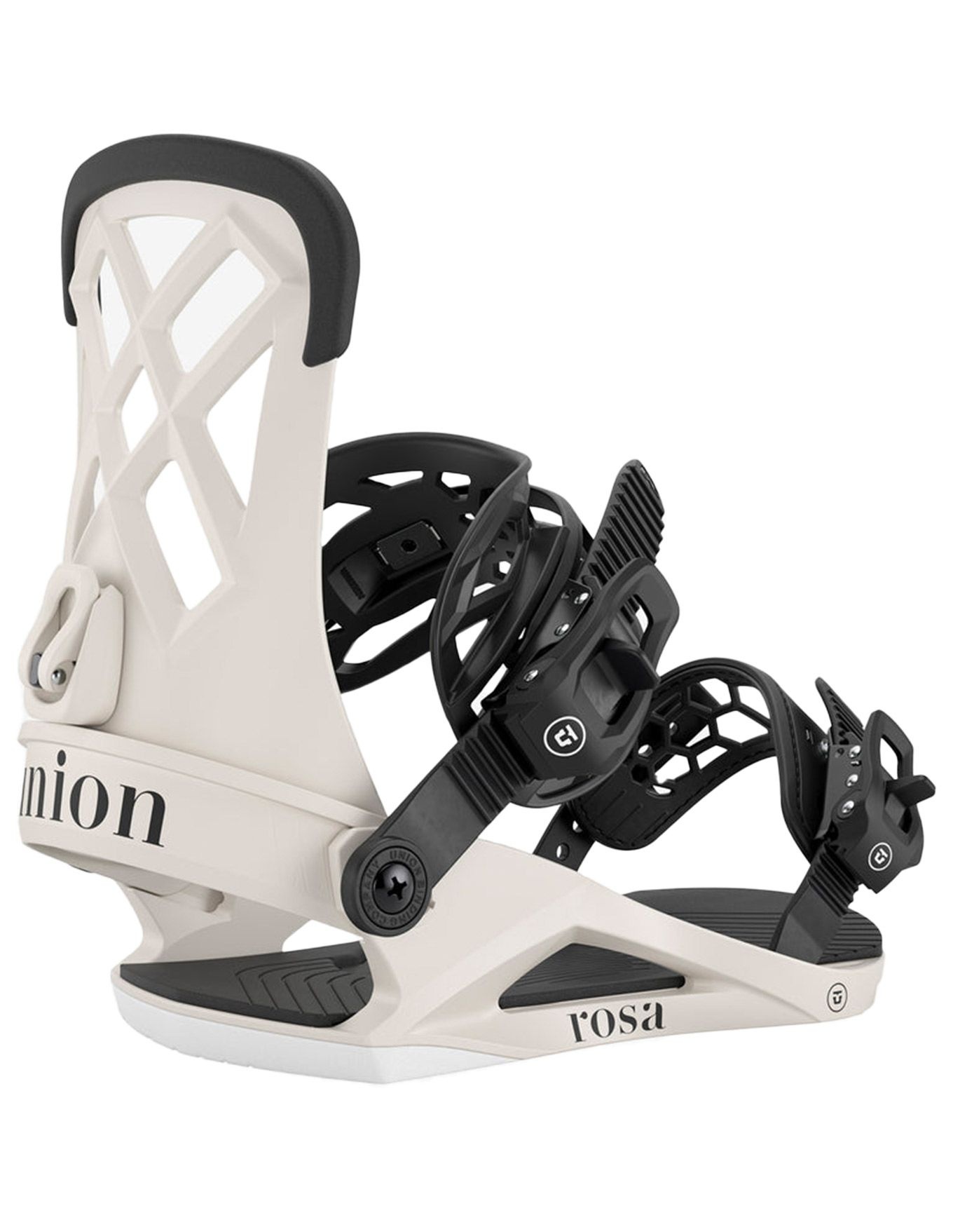 Union Rosa : fixation freestyle ultra-légère pour femme, flex tolérant, spoiler CP3 S ajouré, straps anatomiques et embase EVA pour un ride agile du snowpark à la piste.