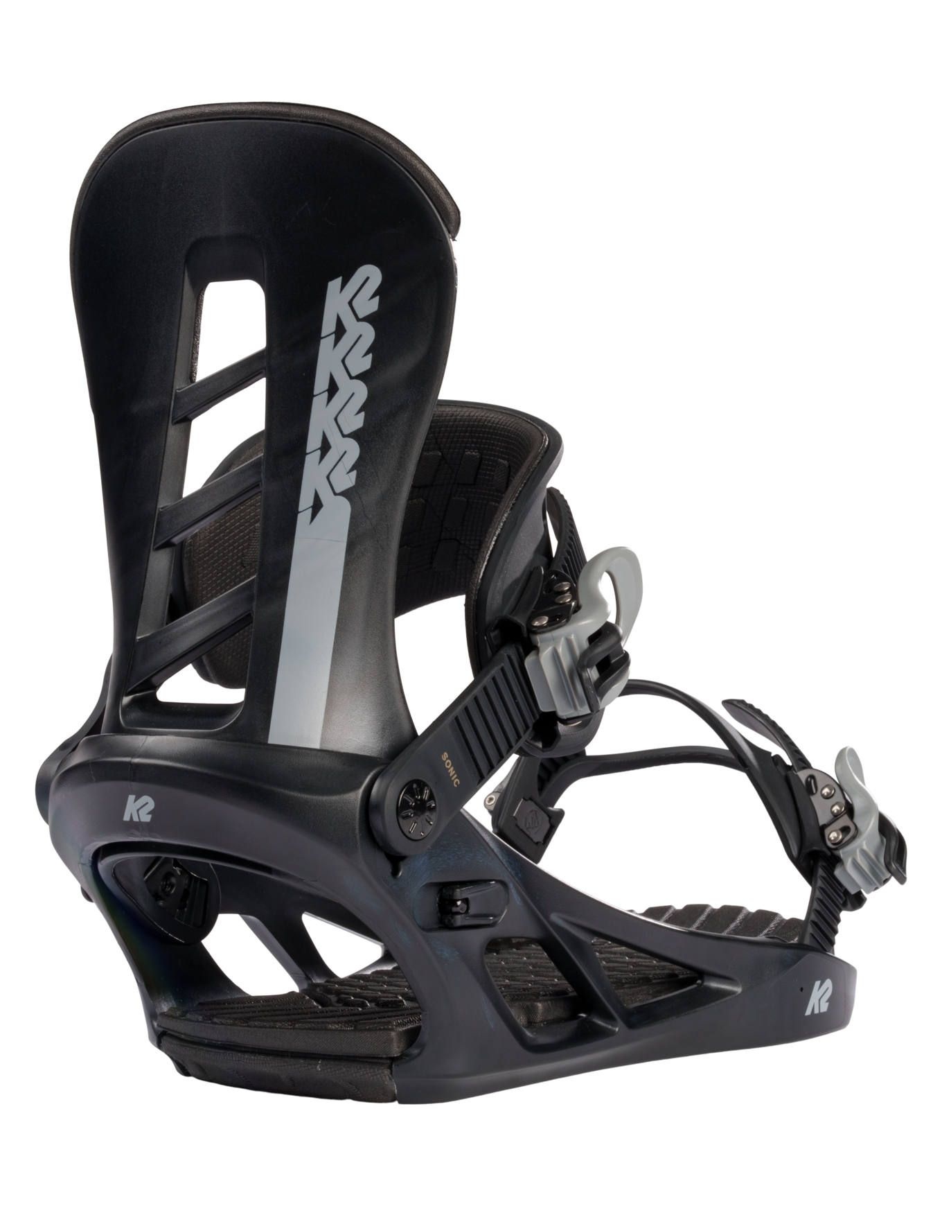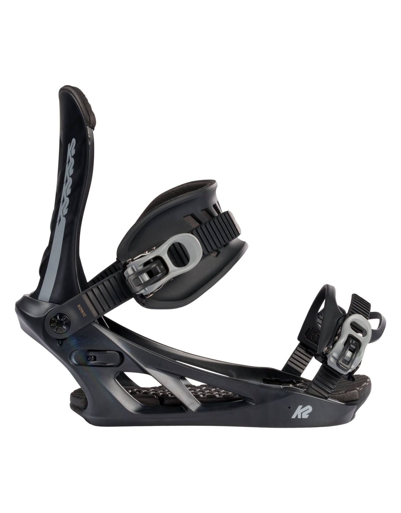La fixation de snowboard K2 Sonic Black, conçue pour les rideurs débutants à intermédiaires, allie embase PC ProFusion™ légère, spoiler polycarbonate et straps Perfect Fit™ pour un maintien précis et un confort prolongé sur tous les terrains.