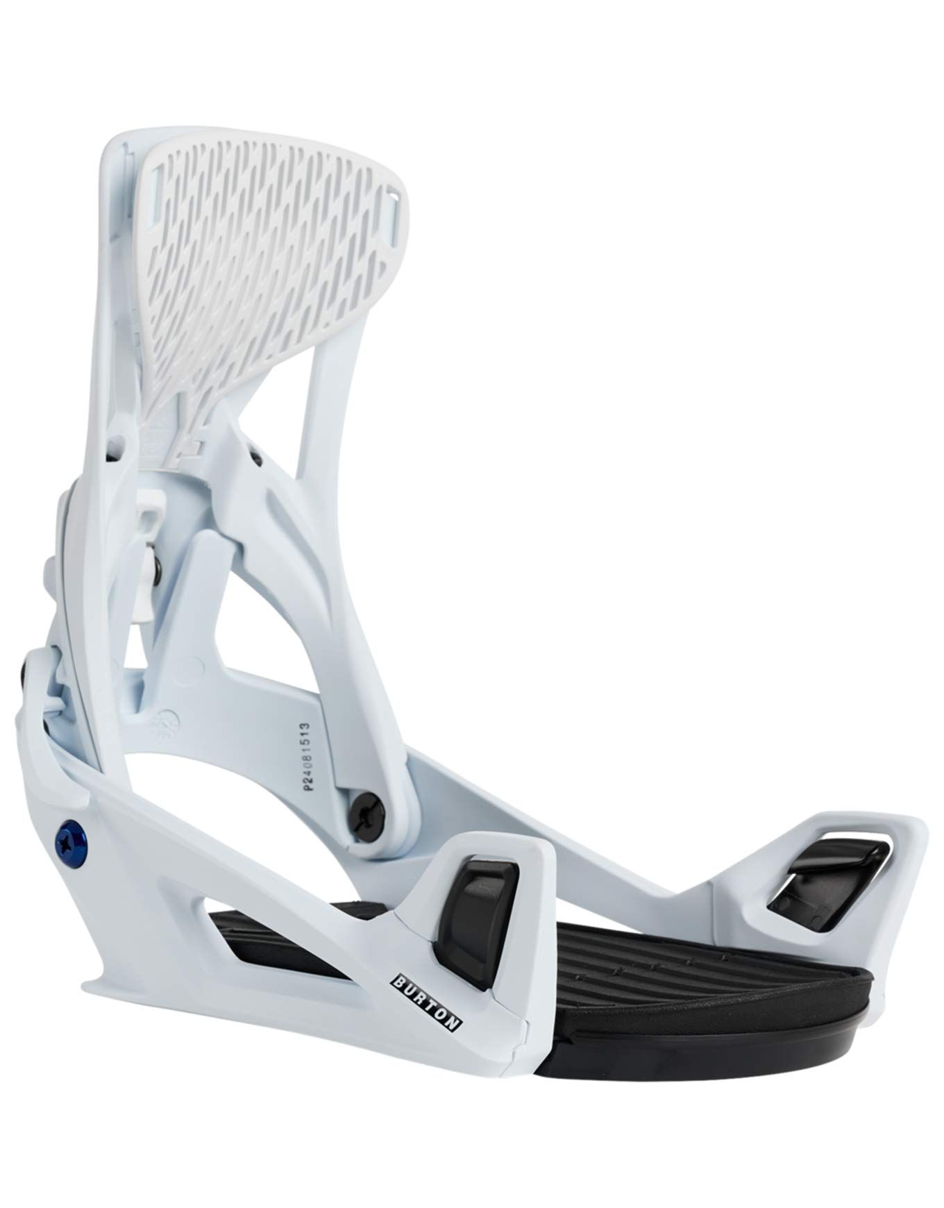 Les fixations snowboard Burton Genesis Step On® White, conçues pour rider intermédiaire/confirmé, s’enclenchent en un instant sans straps grâce à trois ergots, offrent légèreté, tenue ferme et compatibilité Re:Flex™ sur tous terrains.