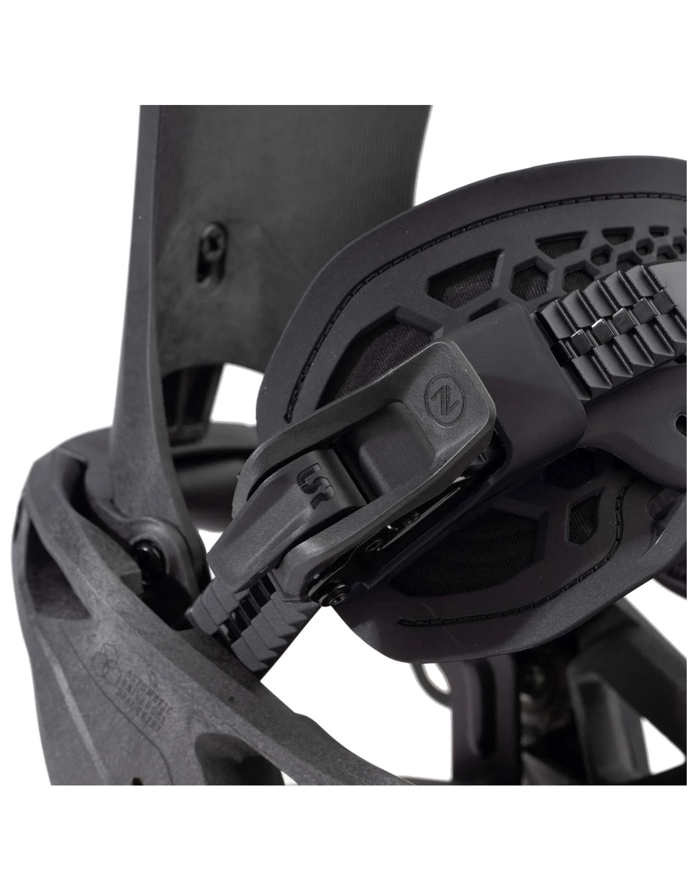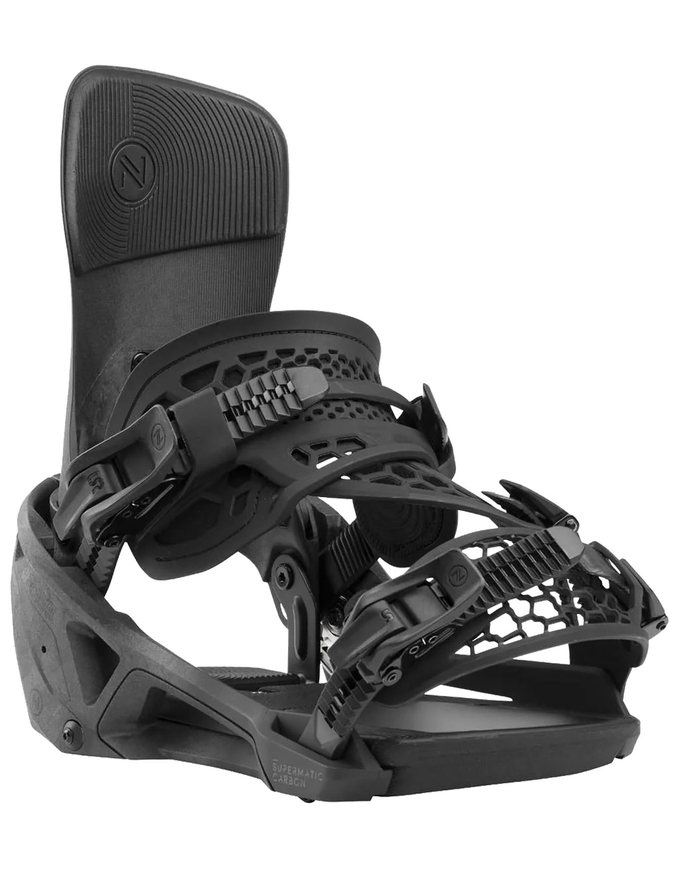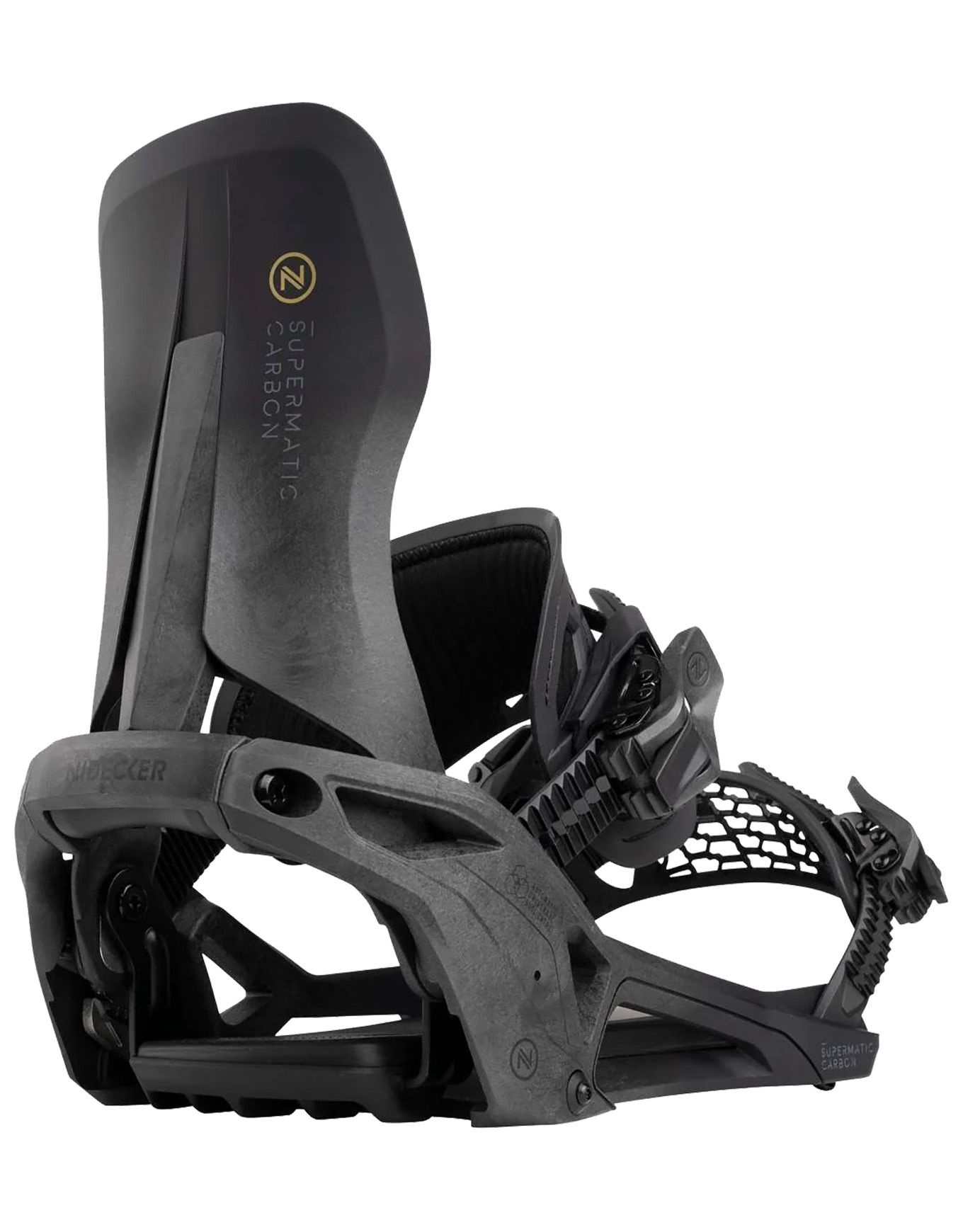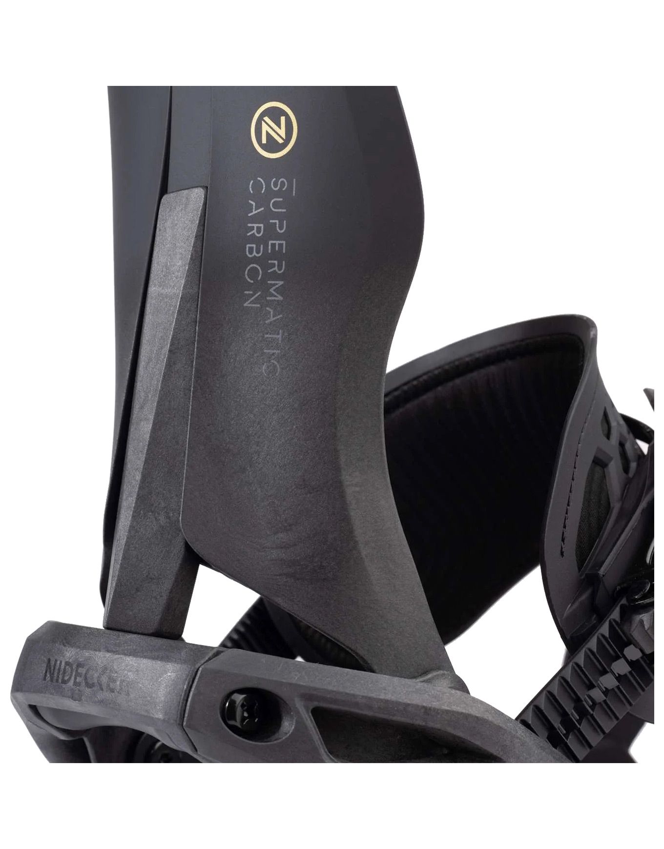 Conçue pour rider la montagne sous toutes ses formes, la fixation de snowboard unisexe Supermatic-Carbon Black s’adresse aux rideurs experts. Cette saison, le modèle phare fait l’objet d’une révision complète qui préserve la simplicité et la performance ayant assuré son succès. Elle intègre la technologie brevetée Drop-In Tech™ de Nidecker : l’introduction du pied par l’arrière, suivie d’une pression sur le talon, déclenche l’enclenchement automatique de la fixation, les mains restant libres.