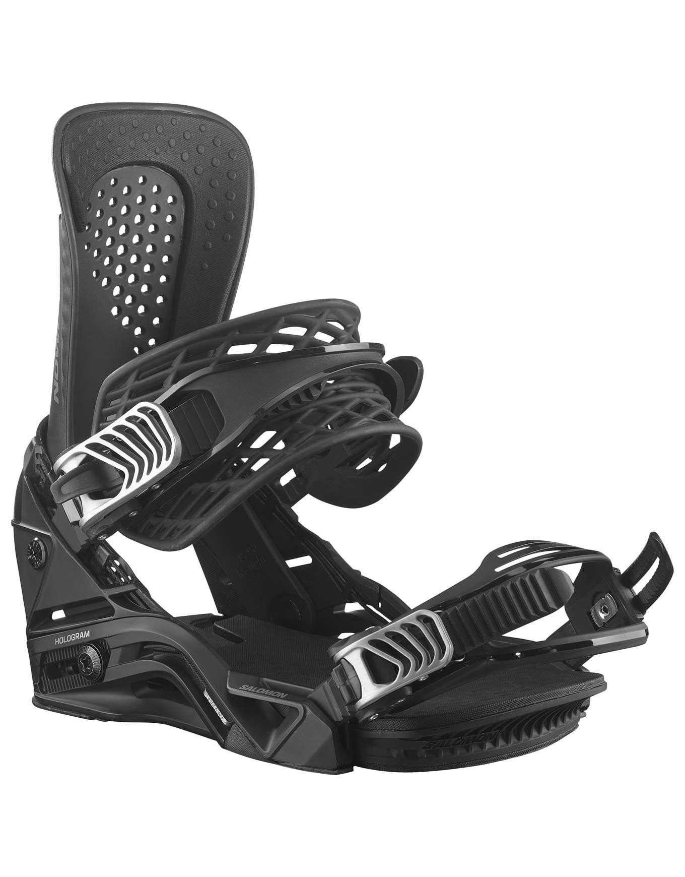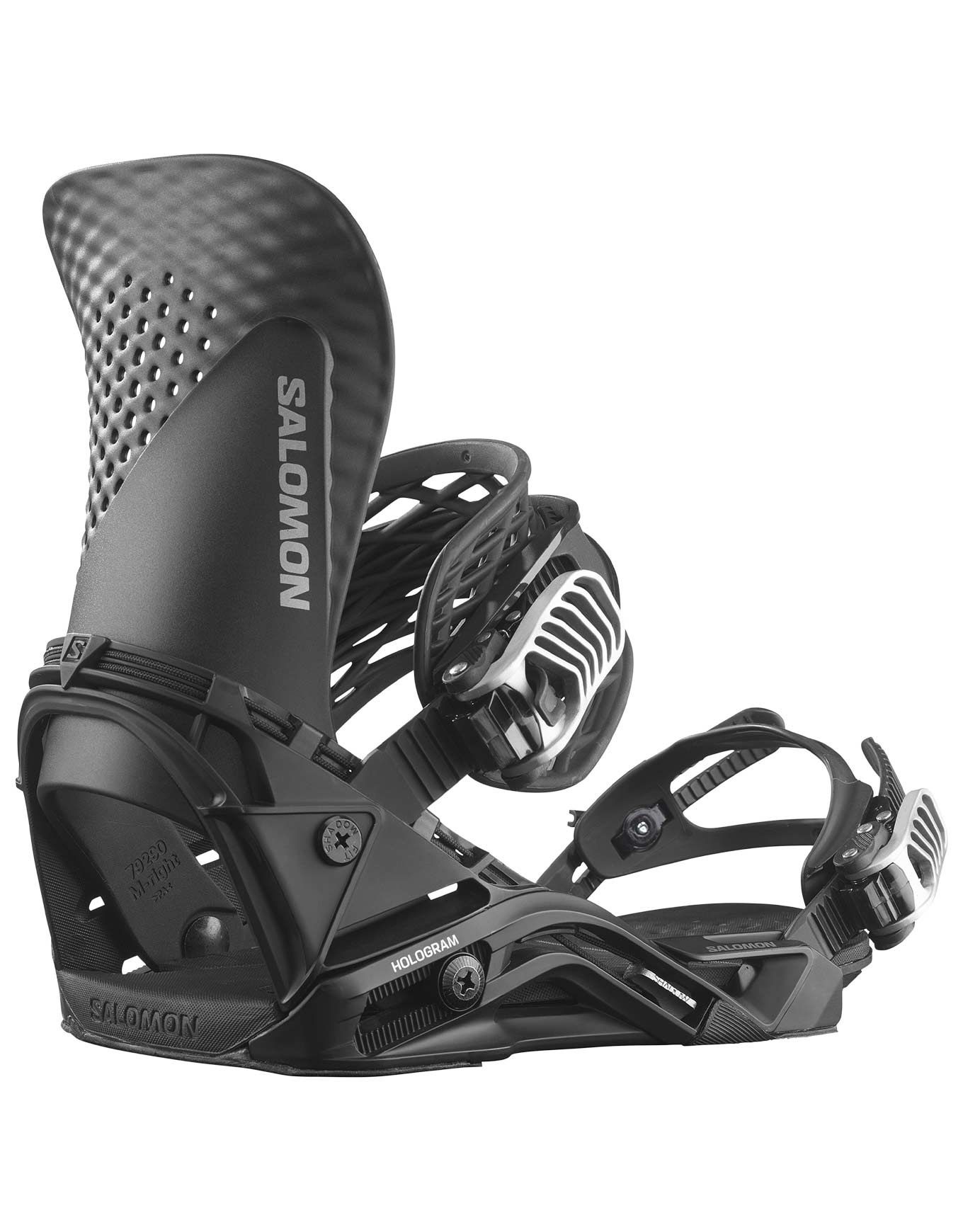 La fixation Salomon Hologram Black est une liaison 100 % freestyle pour riders confirmés, offrant réactivité maximale via le strap Power lite et le Kevlar Quickwire, fit ultra-précis Ultra-Fit, mousse Full EVA Supreme et embase Shadow Fit™ pour confort et transmission directe.