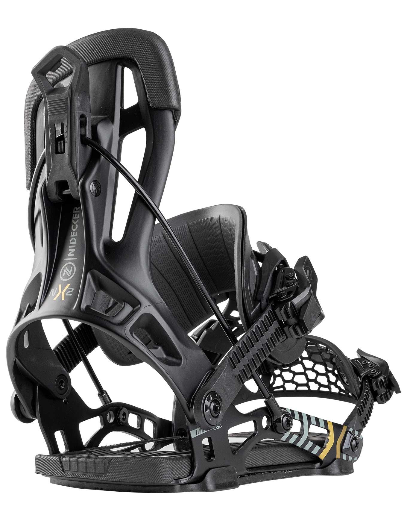 NX2 Hybrid Black de Nidecker : fixation snowboard all-mountain double entrée, strap Hybrid Powerstrap, spoiler Glass-Filled Nylon Modback et embase alu pour ride rapide et précis des snowboardeurs confirmés.