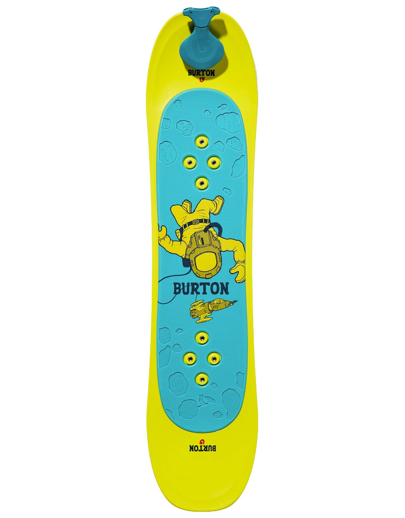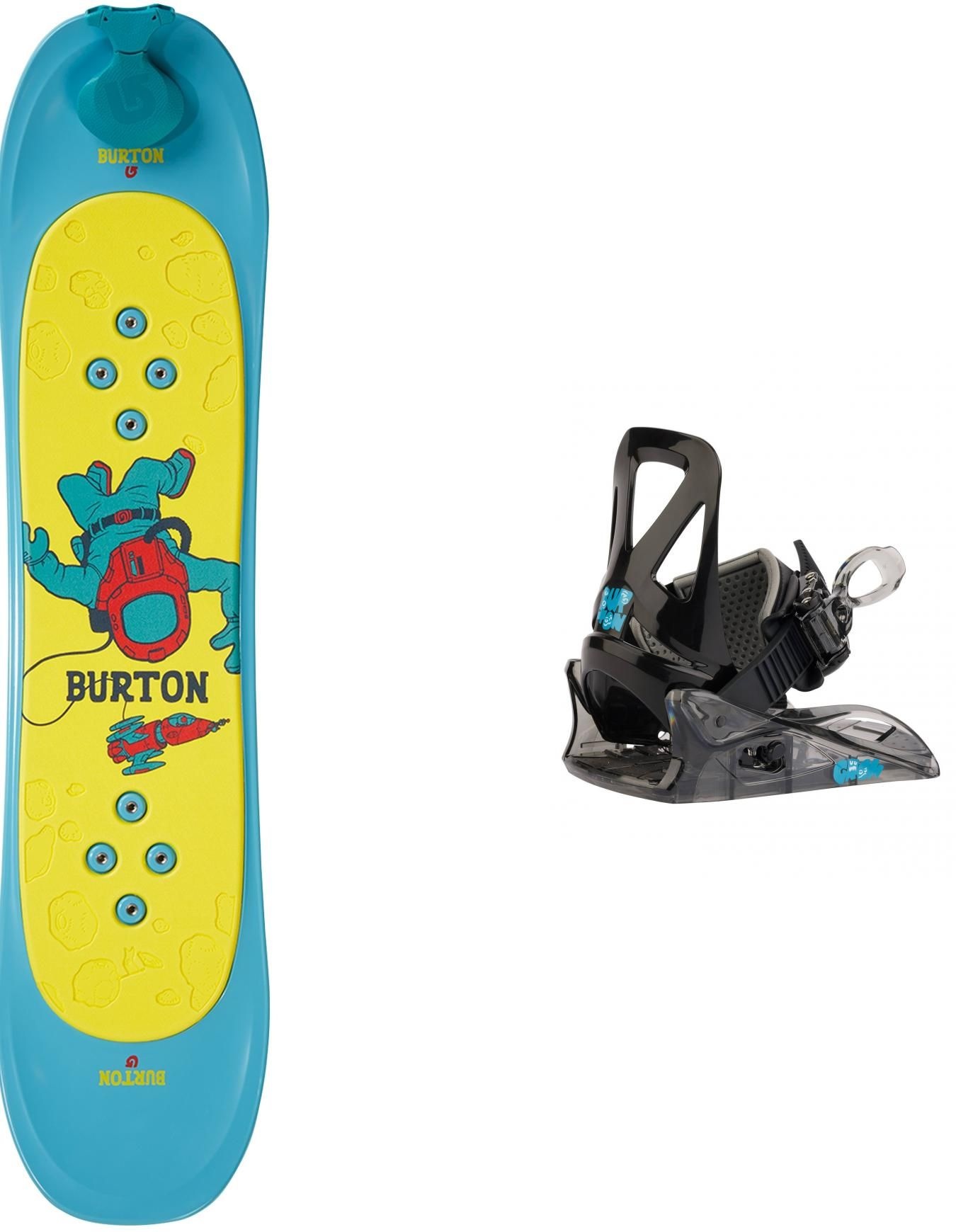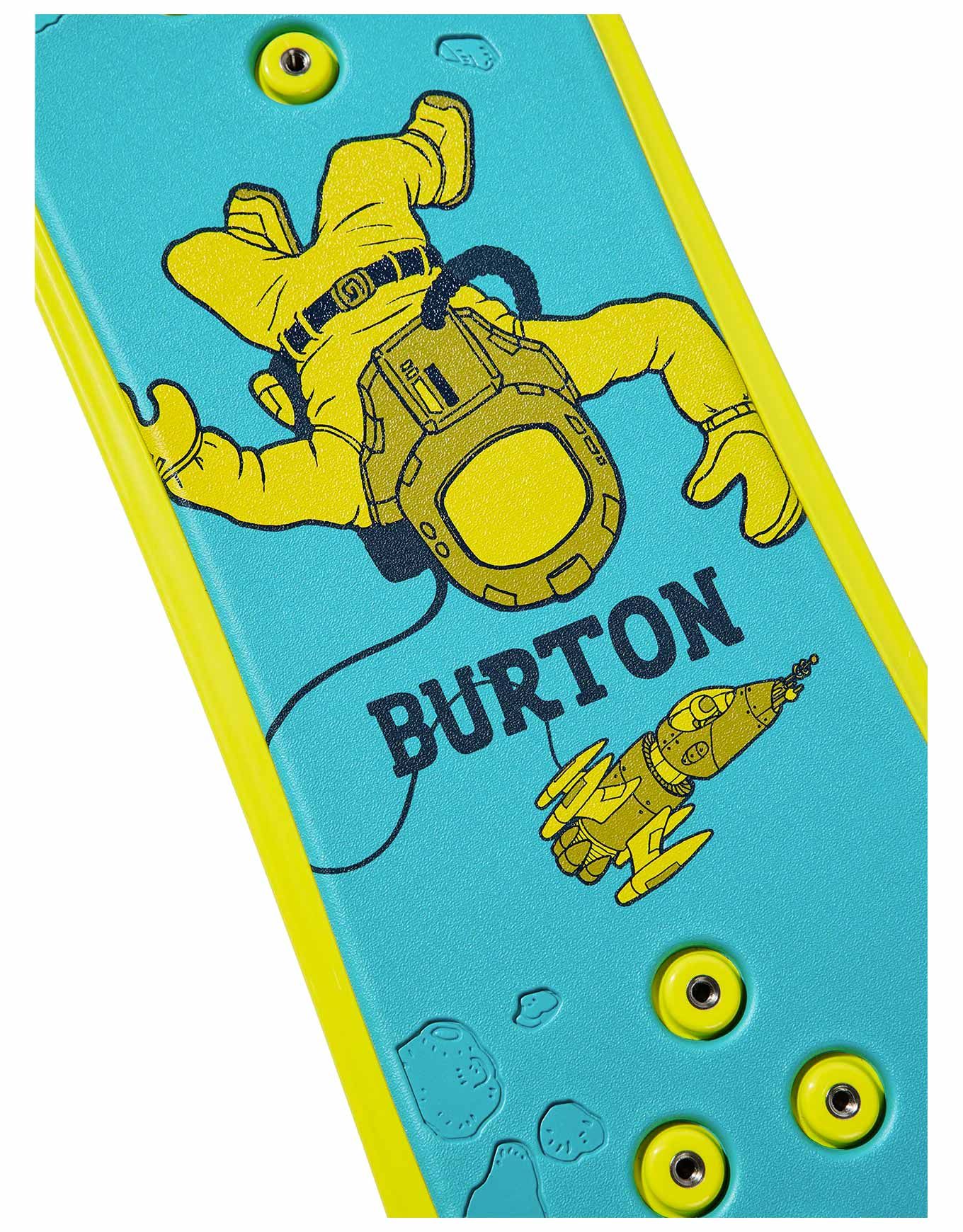 Burton Riglet Board 2026, snowboard enfant polyvalent neige/tapis/gazon, sans carres, surface EVA antidérapante et système Riglet Reel intégré pour initier en sécurité les plus jeunes dès 3 ans.