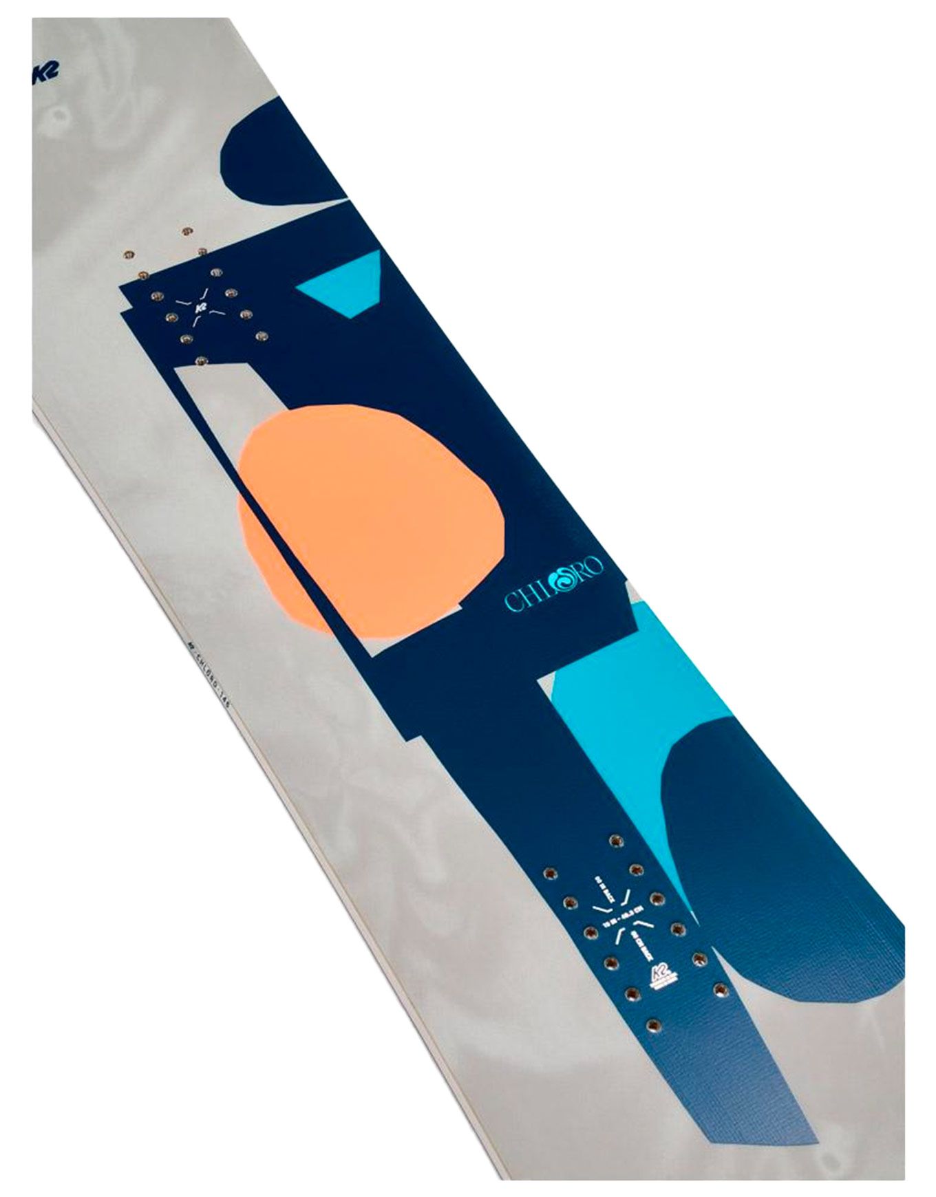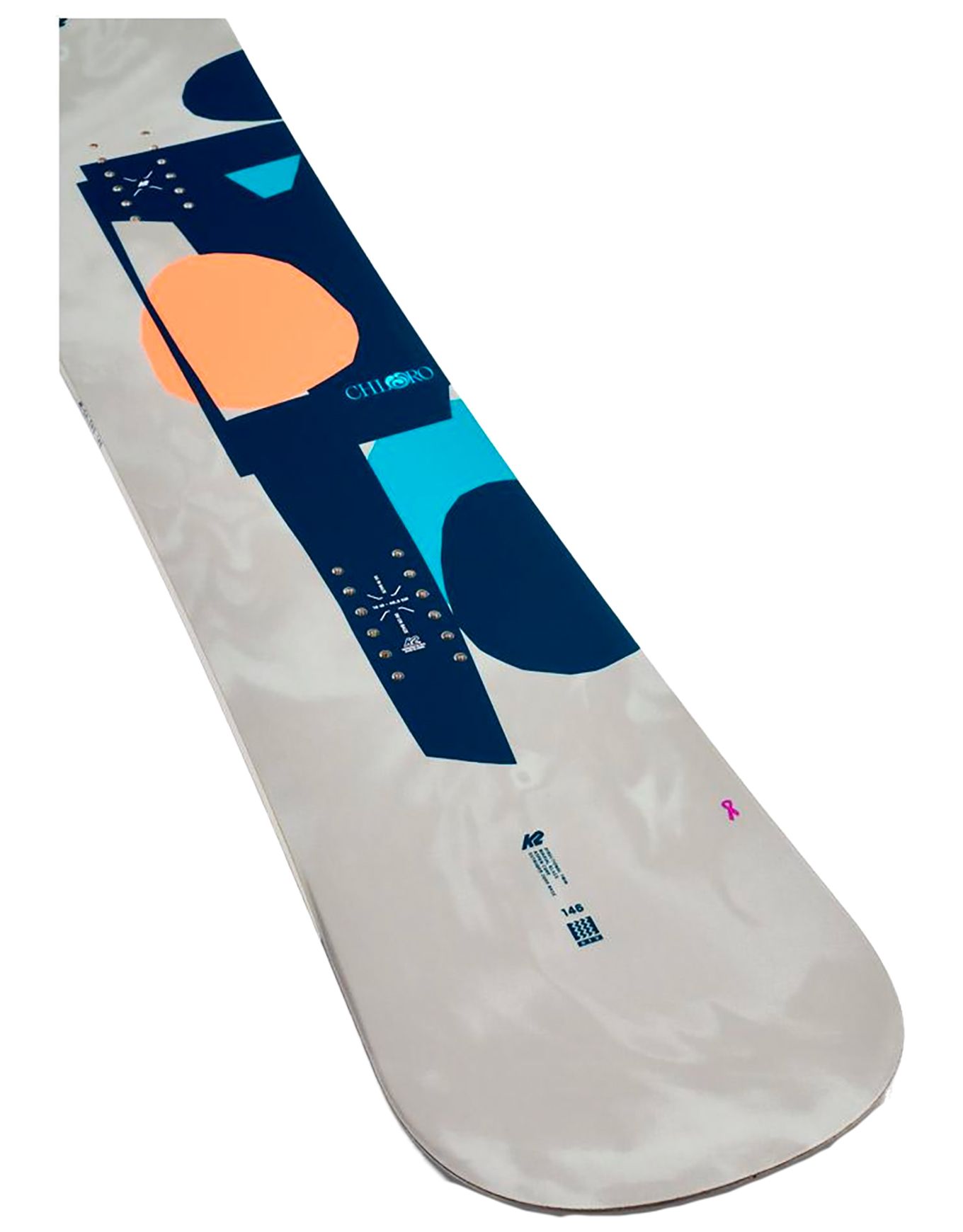 Le snowboard K2 Snowboard Chloro 2026 all-mountain femme allie rocker twin, noyau Rhythm en paulownia et construction Hybritech pour un flex tolérant, virages sécurisés et progression rapide sur tout le domaine.