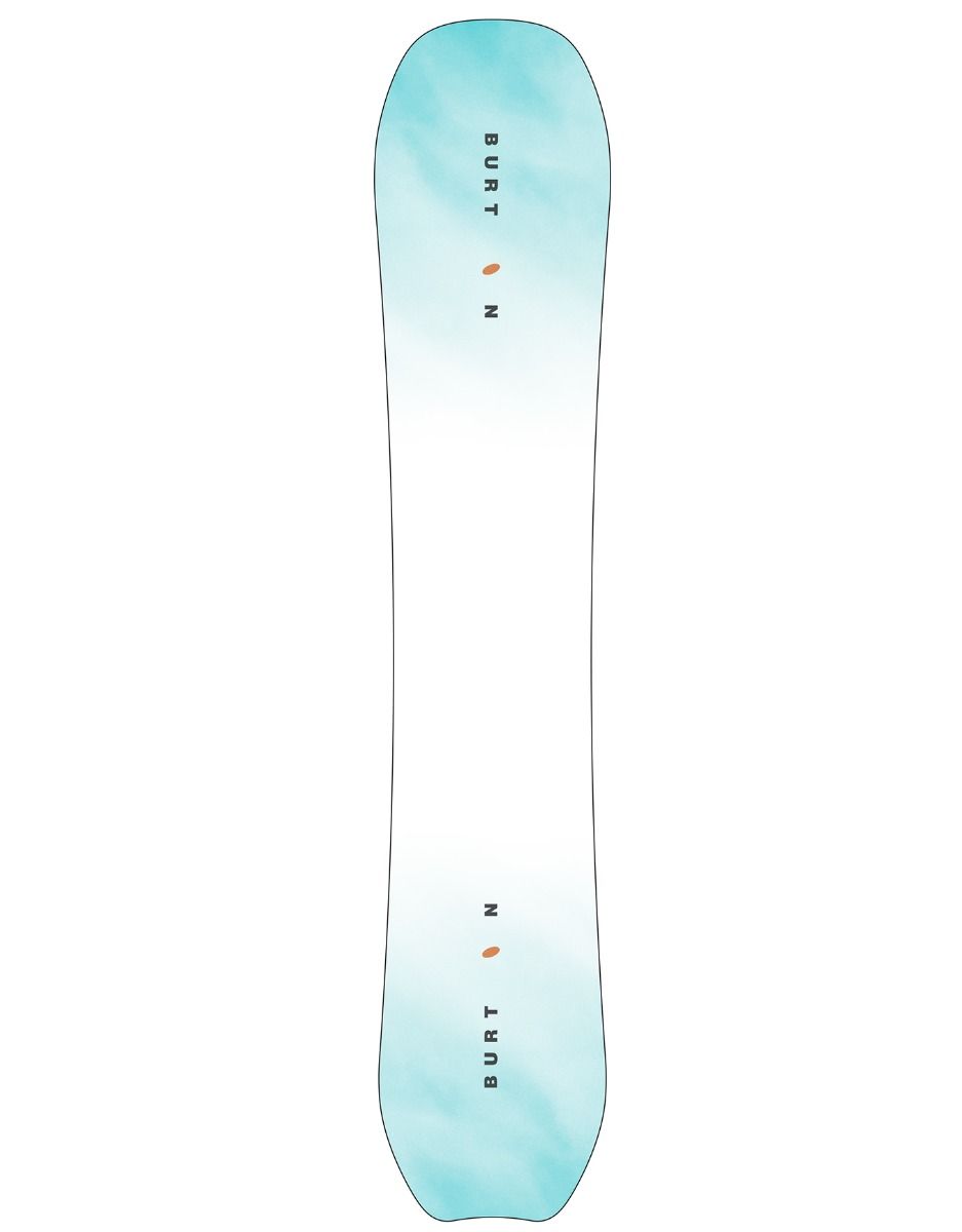 Burton Story board 2024, snowboard polyvalent femme, camber traditionnel + entry rocker, shape directionnel 10 mm tapered, flottaison renforcée en poudreuse, carre agressive sur neige dure, flex rigide avec renfort carbone Triax I-Beam.