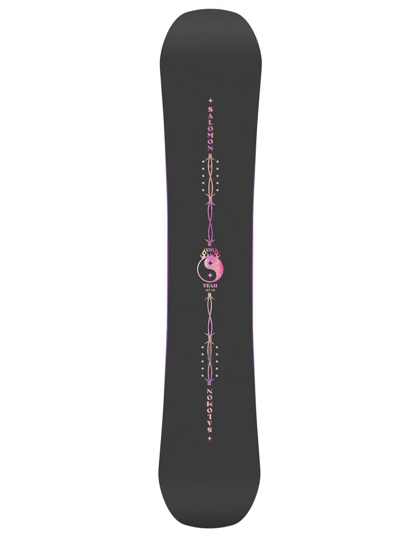 La Salomon Oh Yeah 2025 est une snowboard freestyle femme intermédiaire, twin et souple, qui allie maniabilité en park et tenue sur piste grâce aux technologies Freestyle EB et Popster.
