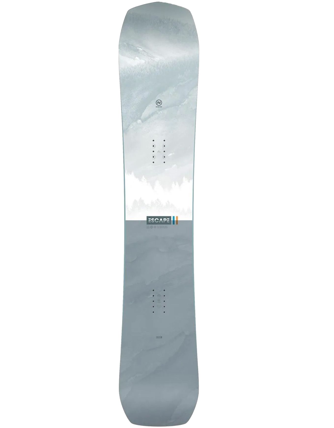 La Nidecker Escape 2025 est une planche de snowboard all-mountain homme orientée freeride expert, avec shape directionnel, rocker spatule/talon, léger setback, renforts carbone et flex 6/10 pour flottaison, accroche et réactivité sur tout terrain.
