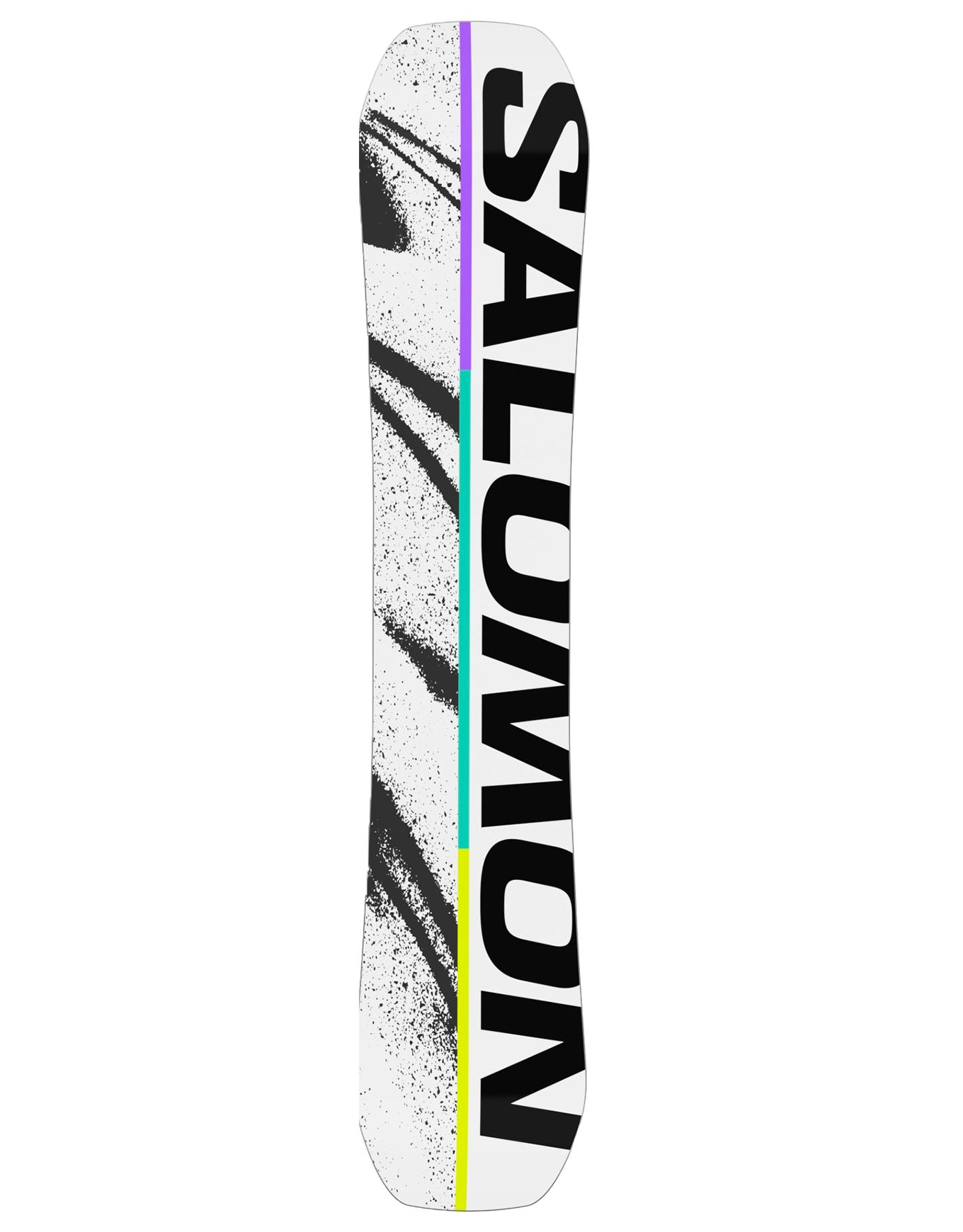 Salomon Huck Knife 2026 est une planche de snowboard freestyle homme intermédiaire, twin shape, flex médium, noyau Triax et pop carbone Popster Booster pour pop et solidité.