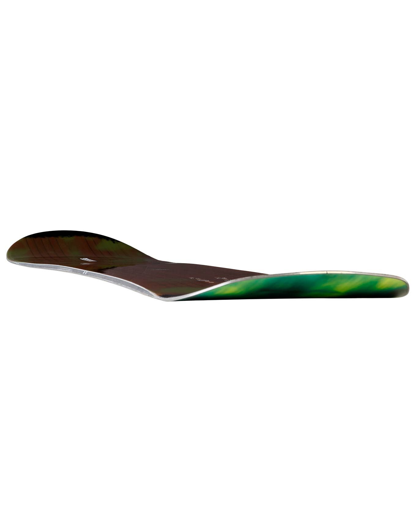 | Shape - DIRECTIONNEL | Silhouette emblématique du snowboard : spatule légèrement plus longue que le talon, pop concentré à l’arrière, flottaison généreuse, pilotage doux et contrôle fiable sur tous les types de terrain et de neige. |