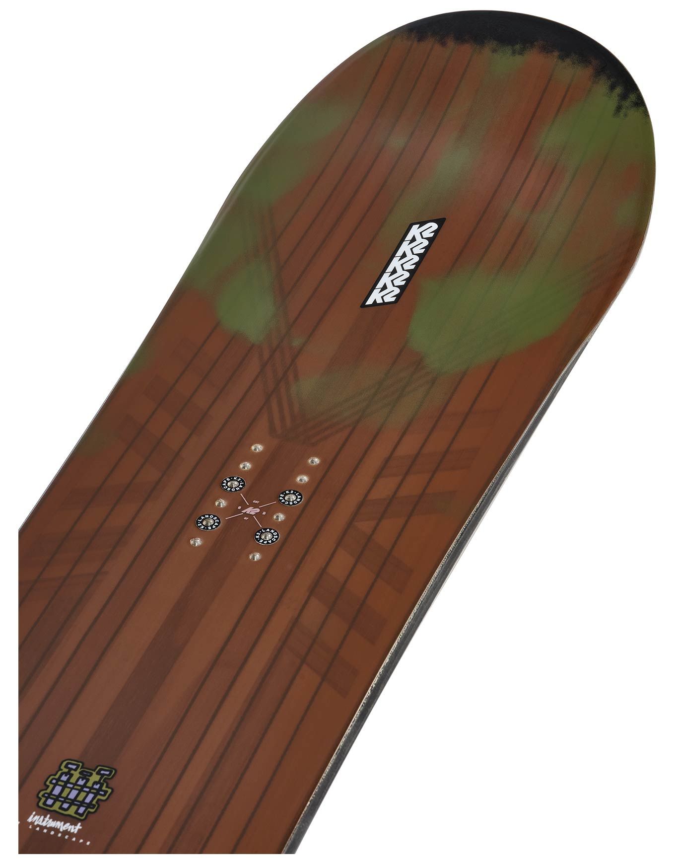 Le snowboard K2 Instrument 2025 all-mountain freeride homme, maniable grâce à Volume Shift™, flotte en poudreuse, tient la carre sur neige dure et répond vite avec son noyau S1 Core et les carbone Carbon Torque Forks™.