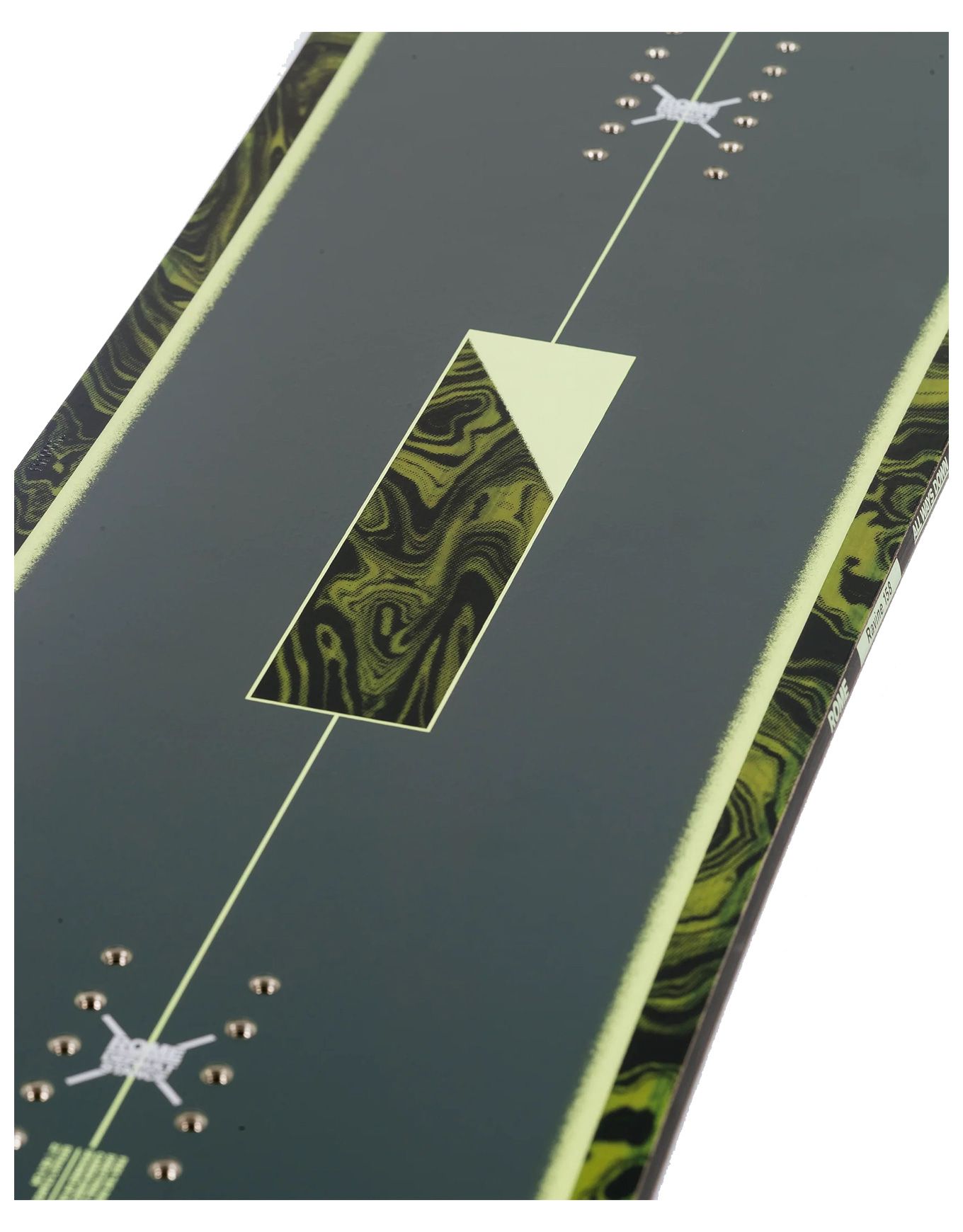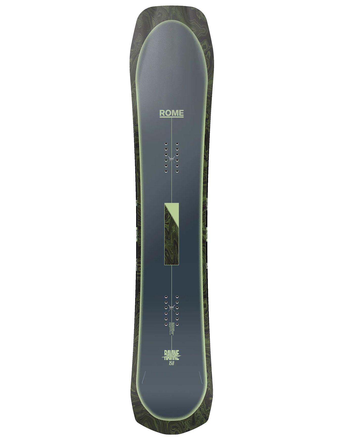 Planche de snowboard freeride Rome Ravine 2025, directionnelle en rocker spatule pour la poudreuse, cambre classique et flex medium pour la polyvalence piste, noyau Pop Core renforcé carbone, légère et réactive.