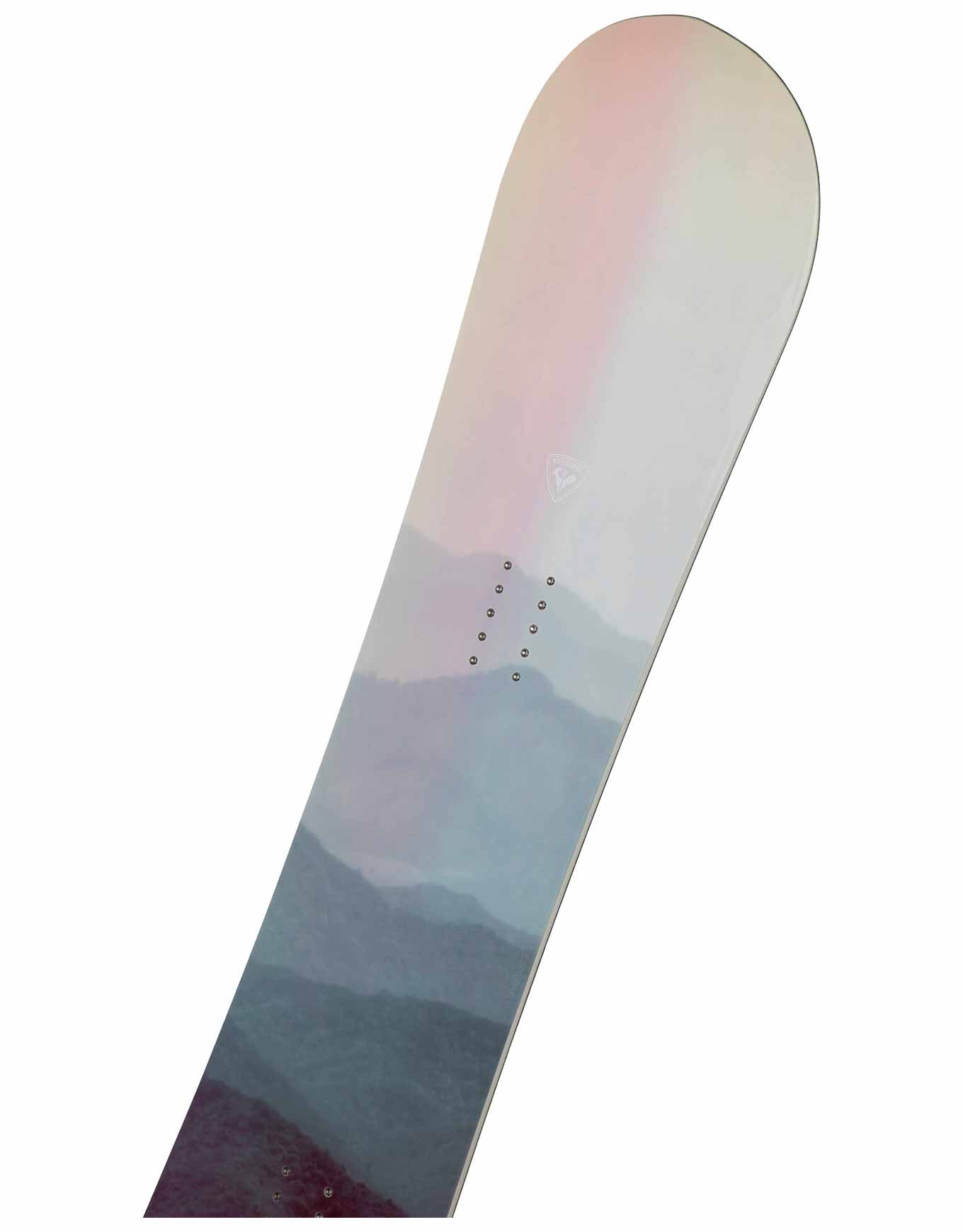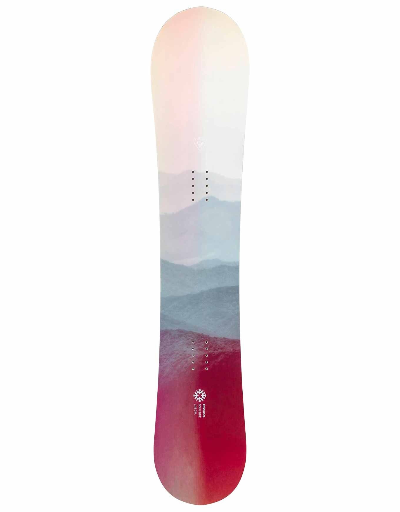 Rossignol Soulside 2026, planche de snowboard femme débutante/intermédiaire, cambre AmpTek Auto-Turn pour maniabilité immédiate, flex souple et noyau bois durable amortissant vibrations, polyvalente piste/poudre/park.