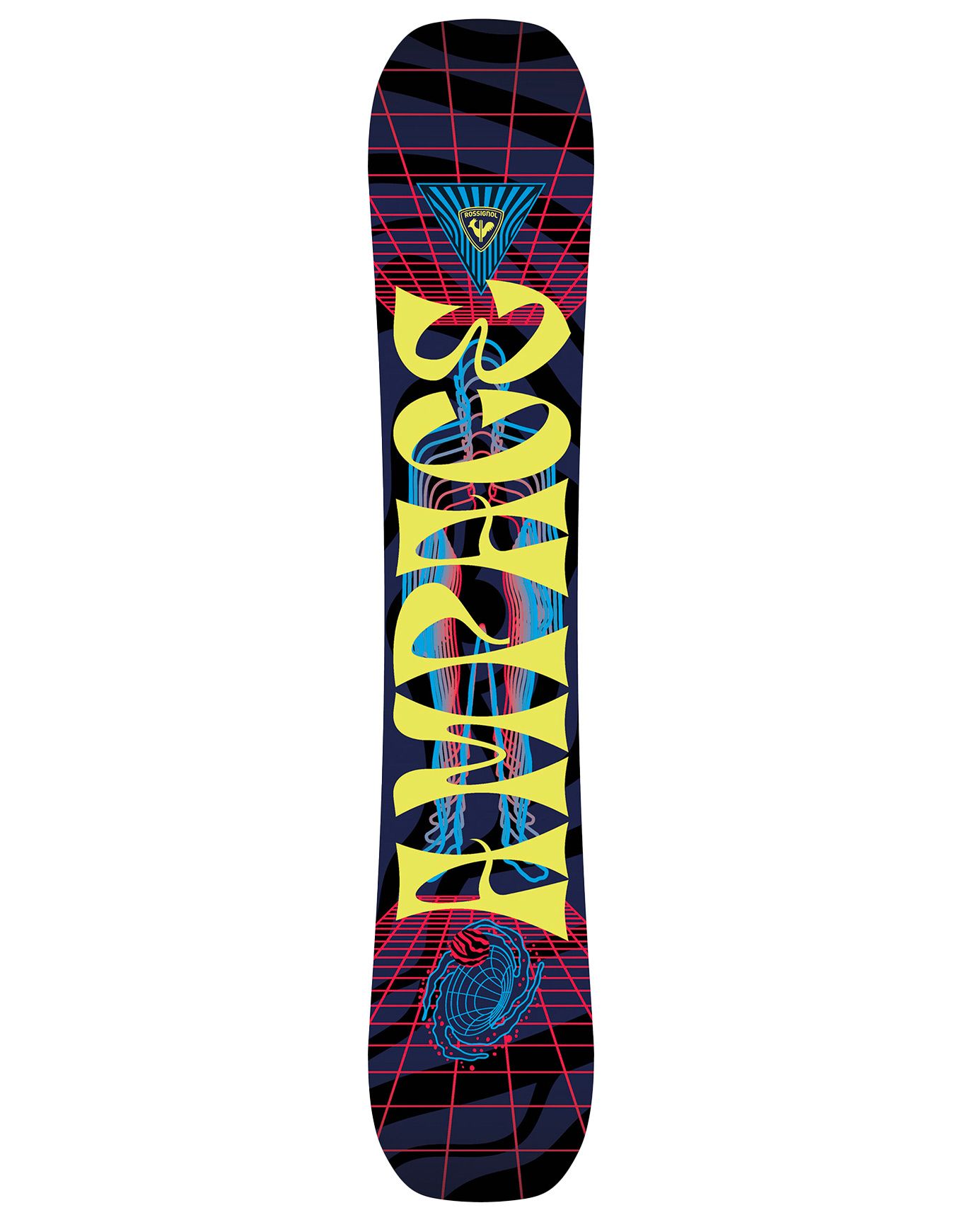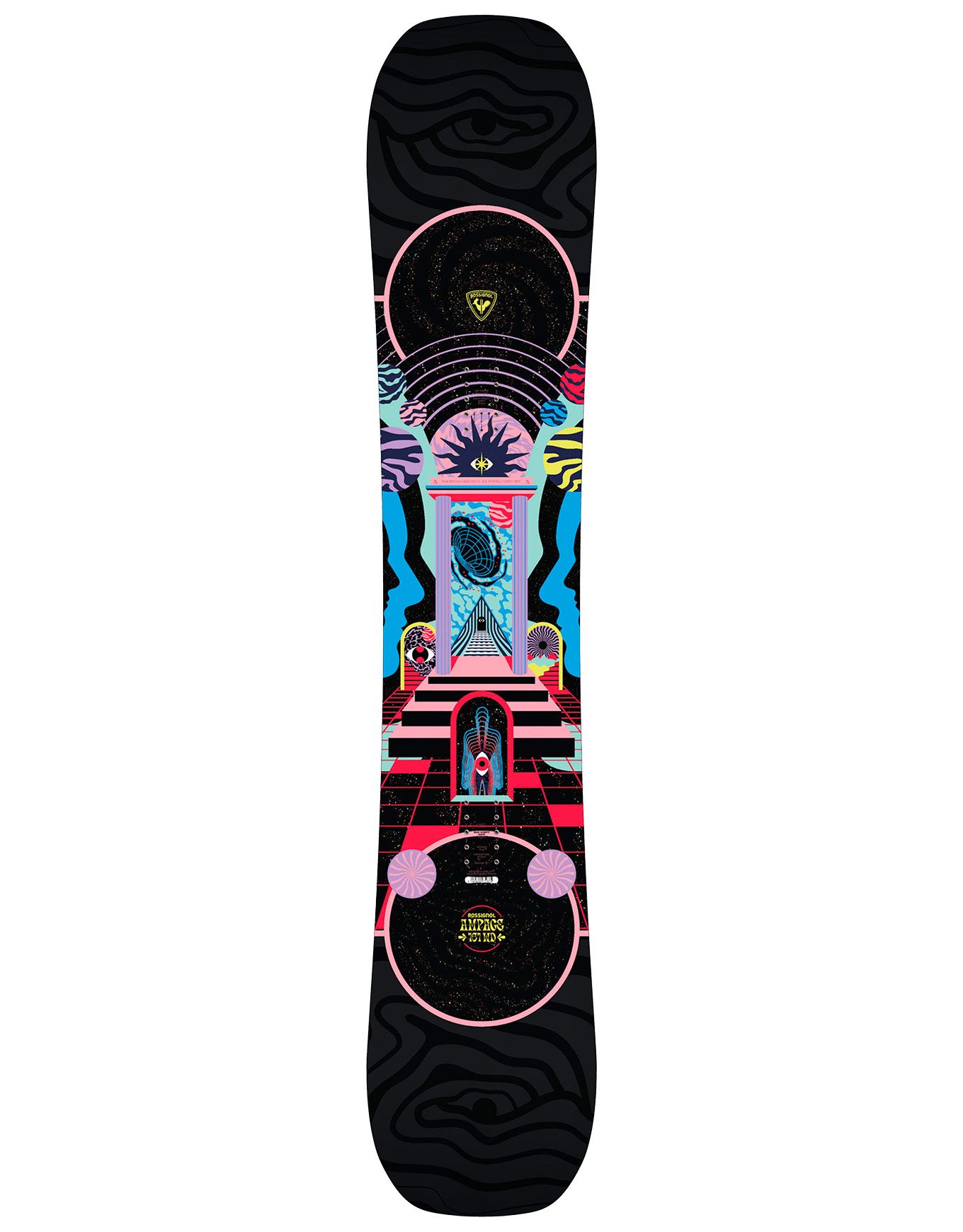 Rossignol Ampage Mind Expander 2025, planche de snowboard freestyle, shape Twin et rocker AmpTek 80 % pour maniabilité immédiate, pop dynamique et progression sereine des débutants sur tous les terrains.
