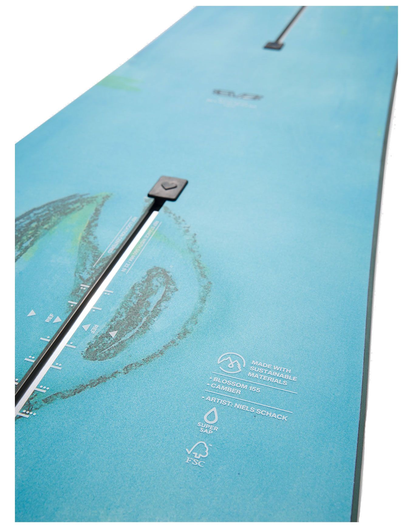 Une glisse constante sur tous types de neige est maintenue par la semelle Sintered WFO, particulièrement résistante. Les performances et la durabilité du topsheet sont préservées tout au long de la vie de la planche grâce aux technologies Infinite Ride™ et Super Sap® Epoxy. Une touche esthétique distinctive est apportée par le design réalisé par l’artiste et snowboarder français Niels Schack.