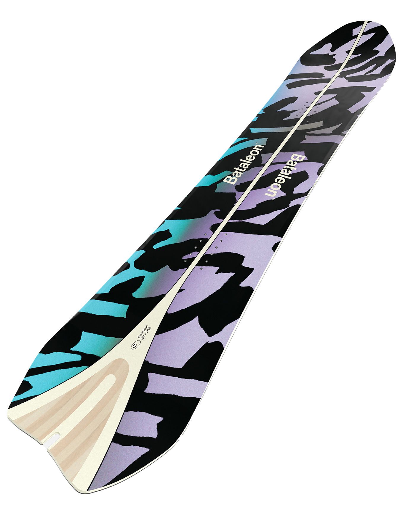 La planche de snowboard Bataleon Cameleon 2025 homme allie directionnal shape, cambre moyen et technologie 3BT avec Sidekick pour une accroche fiable et des transitions fluides sur tout terrain. Noyau paulownia/peuplier et renforts carbone offrent légèreté, réactivité et puissance en freeride et carving.