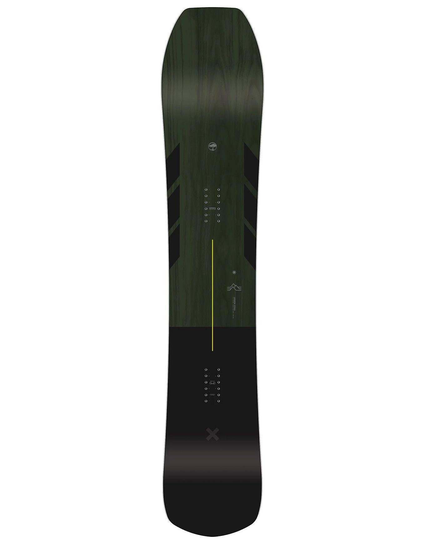 Cambre classique et shape directionnel : une planche conçue pour maîtriser tous types de terrain avec une polyvalence remarquable. La spatule et le talon présentent une plateforme légèrement élargie, garantissant une stabilité hors pair en phases rapides ainsi que des courbes précises sur neige hétérogène. La construction « Mountain Twin », élaborée en collaboration avec Pat Moore, assure un compromis optimal entre maîtrise et puissance, que ce soit sur piste damée, en terrain poudreux ou sur des portions techniques.