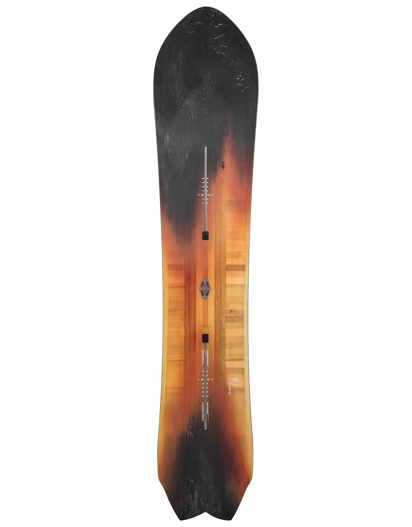 Conçu pour célébrer les divinités enneigées en naviguant entre les épicéas et planant sur la poudreuse, le Fish 3D 2026 de Burton constitue l’équipement parfait pour les journées interminables en altitude. Sa géométrie directionnelle reprend le design Fish iconique de la marque, enrichi d’un pan convexe 3D emprunté au surf positionné sur la spatule et le swallowtail arrière. Plus de prototypes ont été réalisés pour cette planche qu’aucun autre modèle récent, garantissant ainsi au Fish 3D un contrôle accru, une réactivité optimisée et une glisse améliorée sur neige profonde.