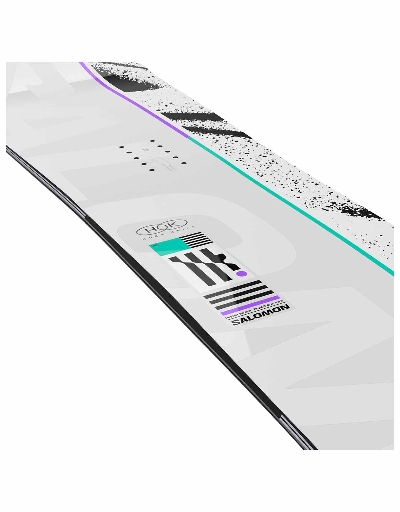 La Huck Knife 2026 de Salomon est une snowboard freestyle homme twin à flex médium, offrant pop carbone, accroche Freestyle Edge Bevel et amorti Royal Rubber pour kickers et rails.