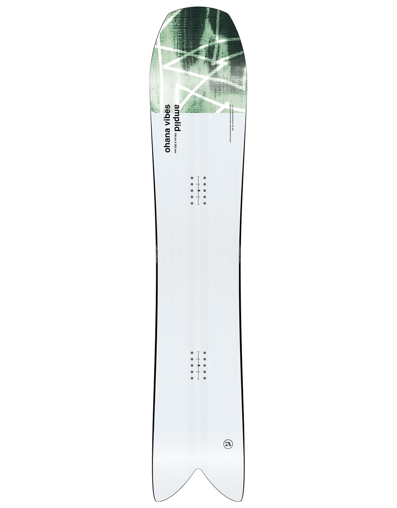 Amplid Ohana Vibes 2026, planche de snowboard freeride directionnelle pour experts, offre portance maximale en poudreuse grâce à son nose long, son swallow tail et la technologie Floatation Tips. Noyau Lite Core, bande carbone Carbon Pop Band et extrémités Thick Cut absorbent les vibrations pour un ride fluide, poppy et maniable en backcountry.