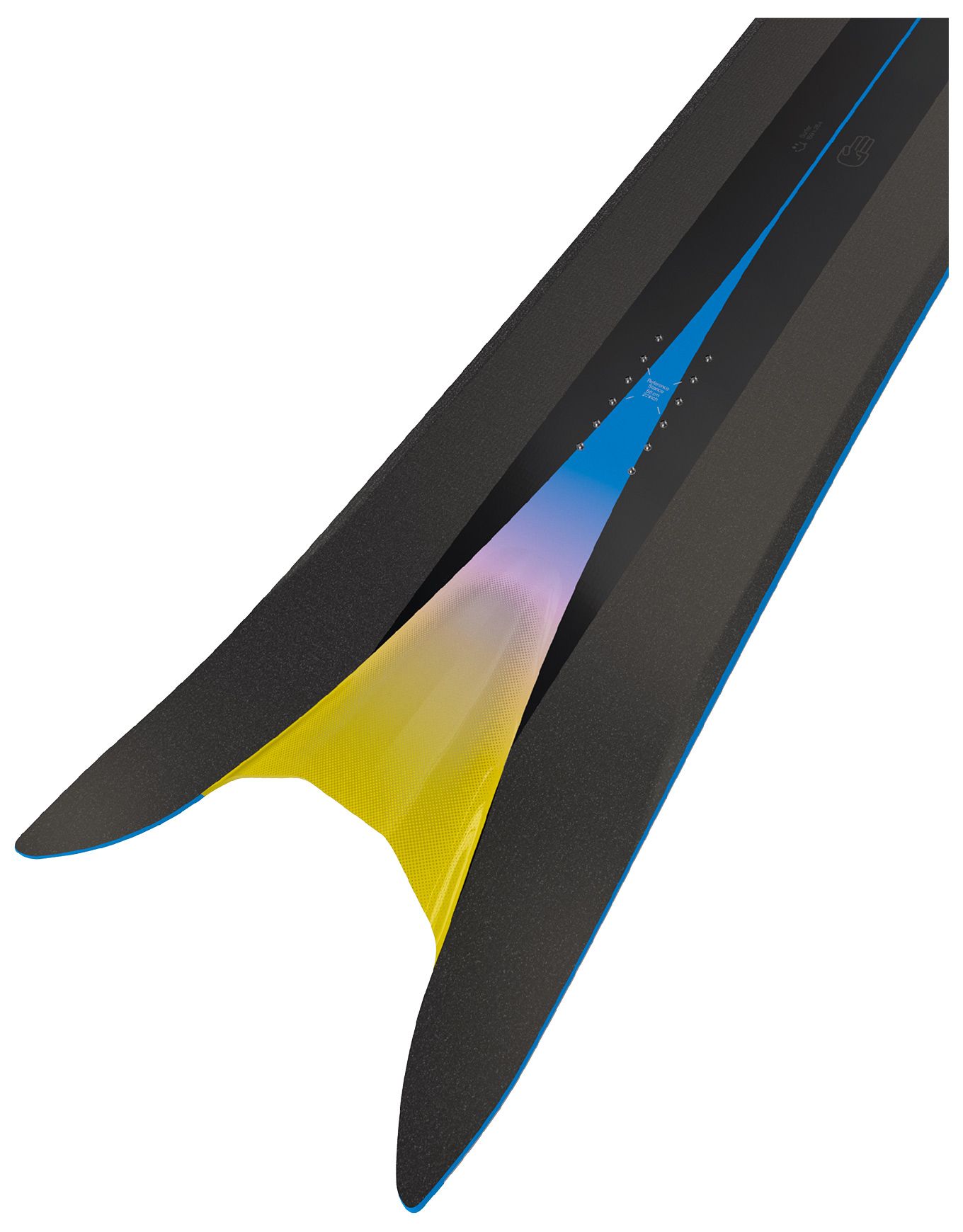 SIDEKICK Relève latérale de la base immédiatement après les points les plus larges du nose et du tail. Les spatules prennent alors une forme plus arrondie, améliorant la flottaison en poudreuse et la pénétration dans la neige dure tout en rendant les transitions d’arête plus fluides.