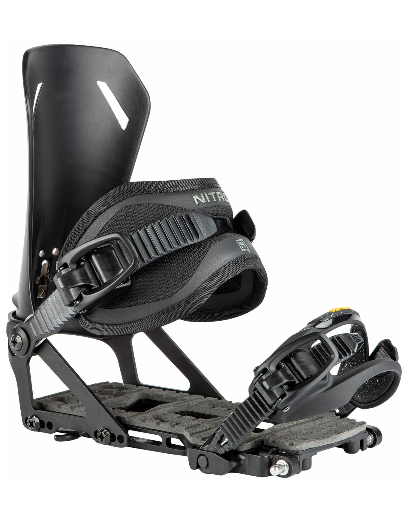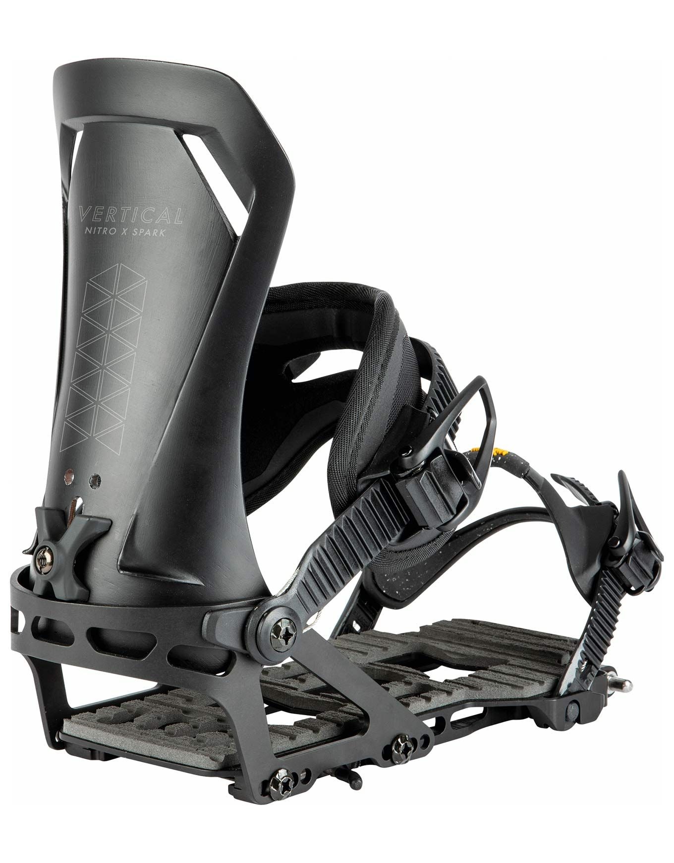 La fixation de splitboard Nitro Vertical ST, développée avec Spark, conjugue embase Tesla T1 en aluminium légère et robuste, straps en nylon aérés, mousse EVA amortissante et spoiler Recline réglable pour assurer confort en montée et précision soutenue en descente.