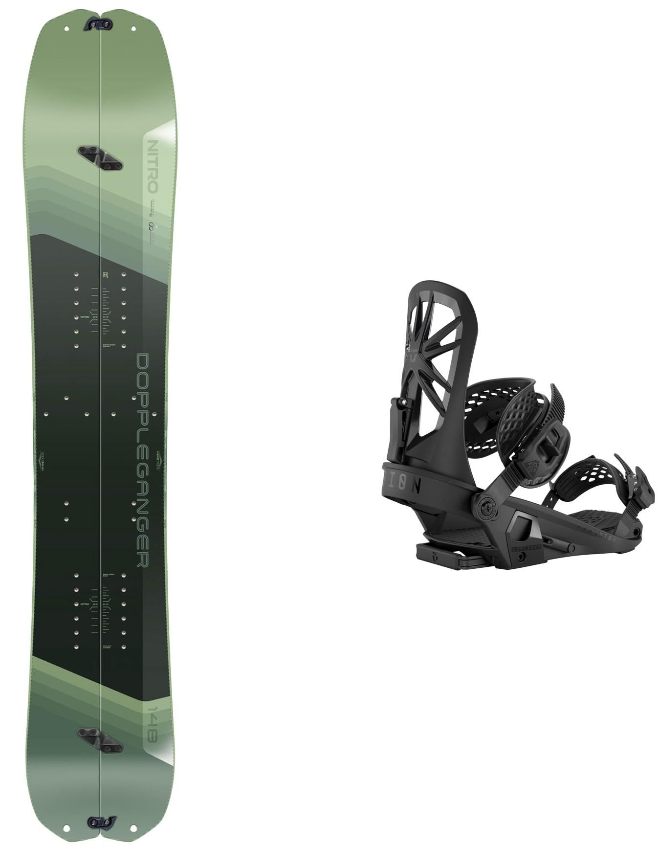 Splitboard Nitro Doppleganger 2026 homme confirmé, équipé des Hike Pods pour l’accroche en montée et la flottabilité en descente, idéal itinéraires freeride éloignés.