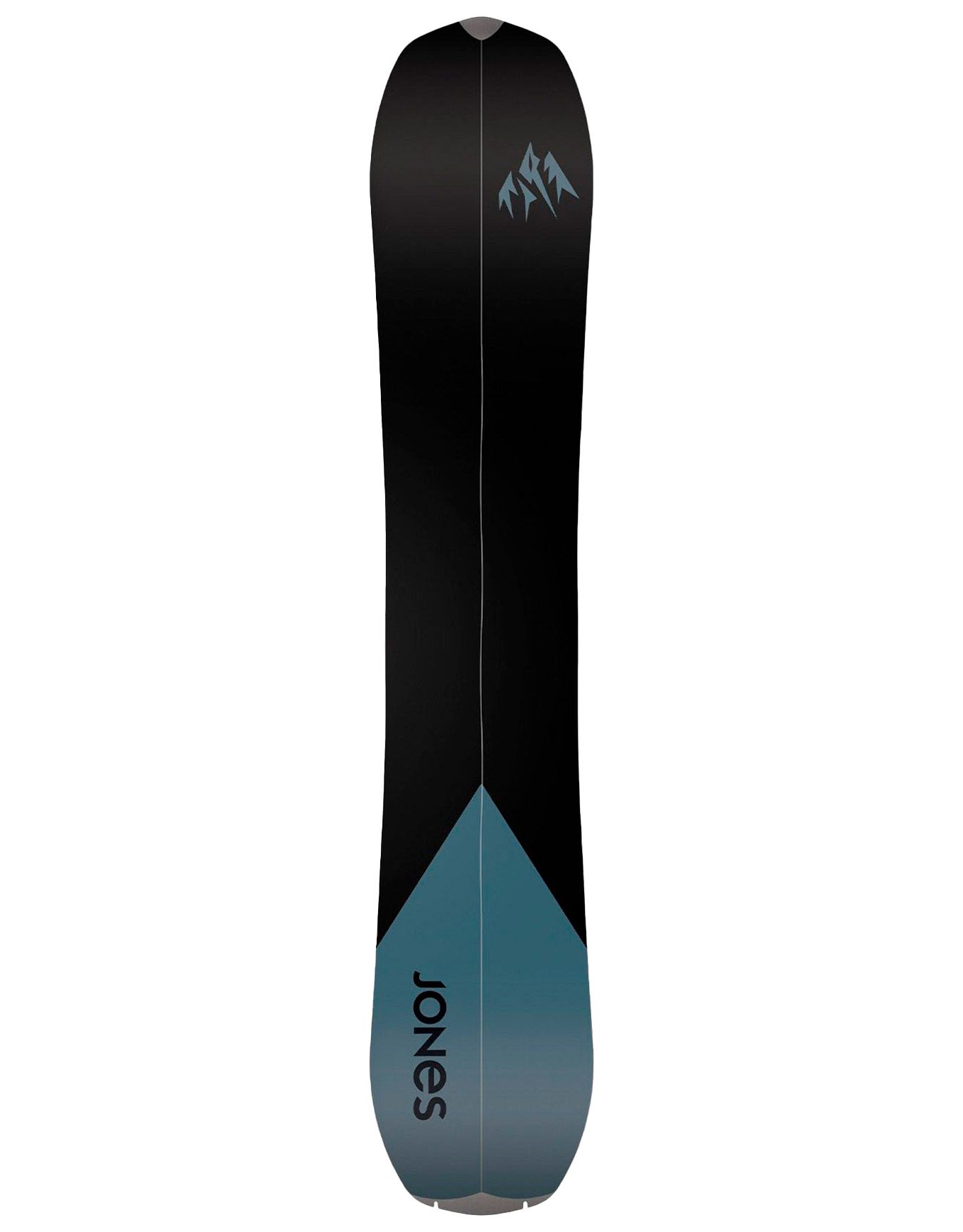 Jones Frontier Splitboard 2025, planche splitboard homme all-mountain/backcountry, s’adresse aux riders intermédiaires/confirmés. Nose évasé, flex 6/10, carres Traction Tech 2.0 et set-back directionnel : flottaison en poudre, accroche sur neige dure, montées fluides.