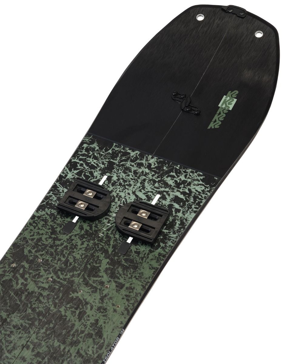 Le splitboard K2 Isolator 2025, pour riders confirmés, allie cambre directionnel pour flottaison et précision, base 4001 pour vitesse durable, et carbone ICG™ 10 pour rigidité légère.