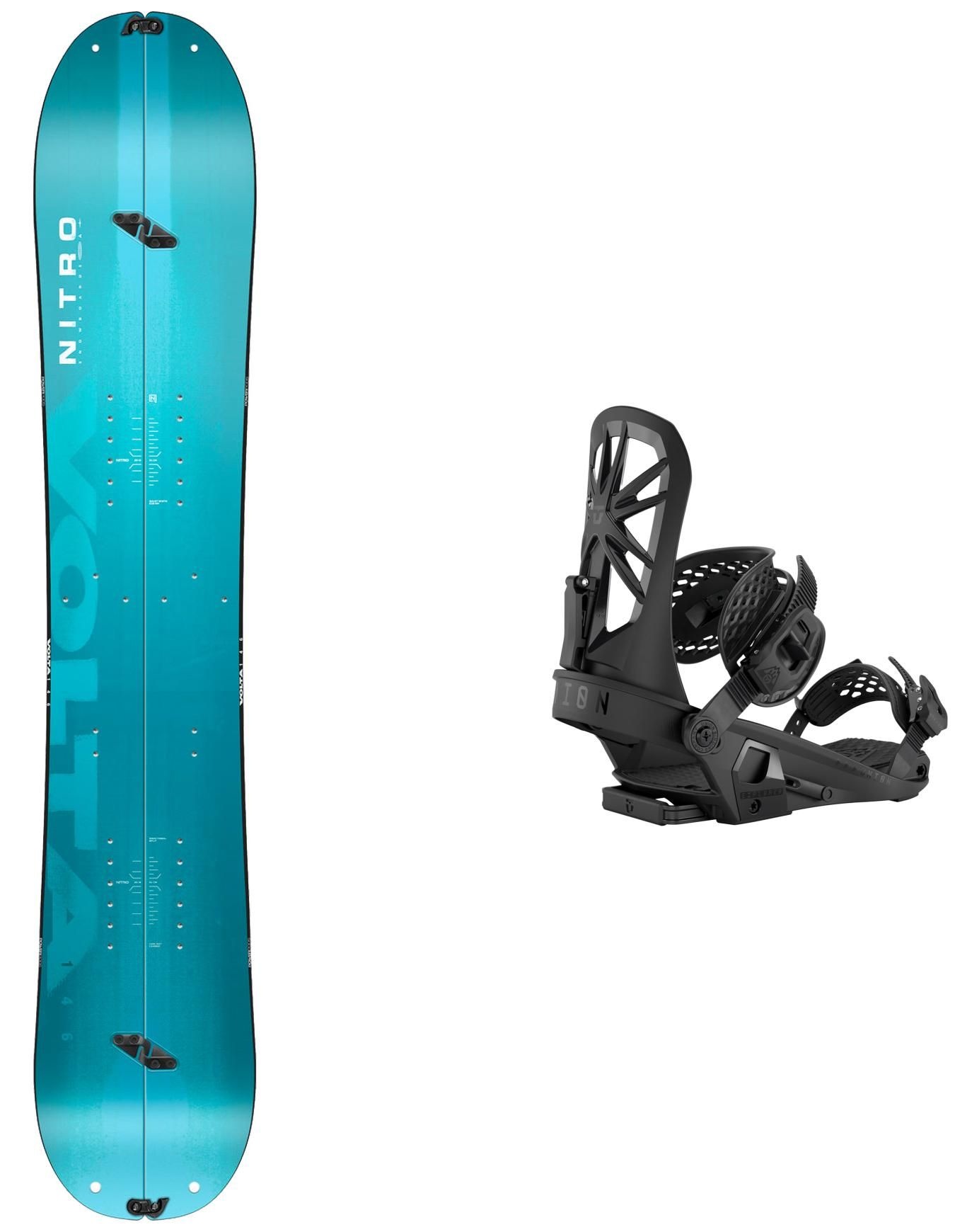 Le splitboard de randonnée Nitro Volta 2026, au shape directionnel repensé, offre un accès abordable à la pratique hors-piste avec une semelle Premium Extruded FH Base glisse facile et entretien minimal.