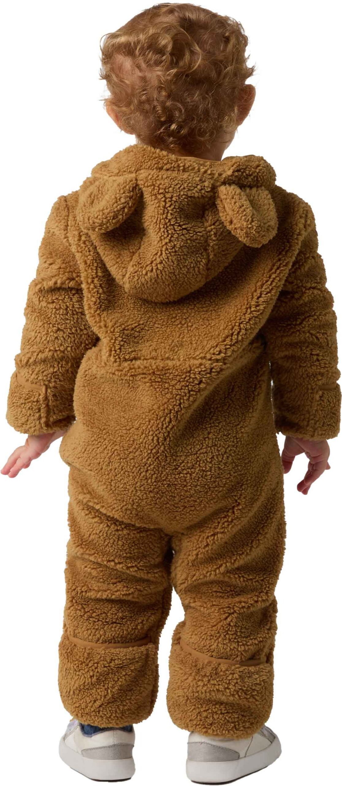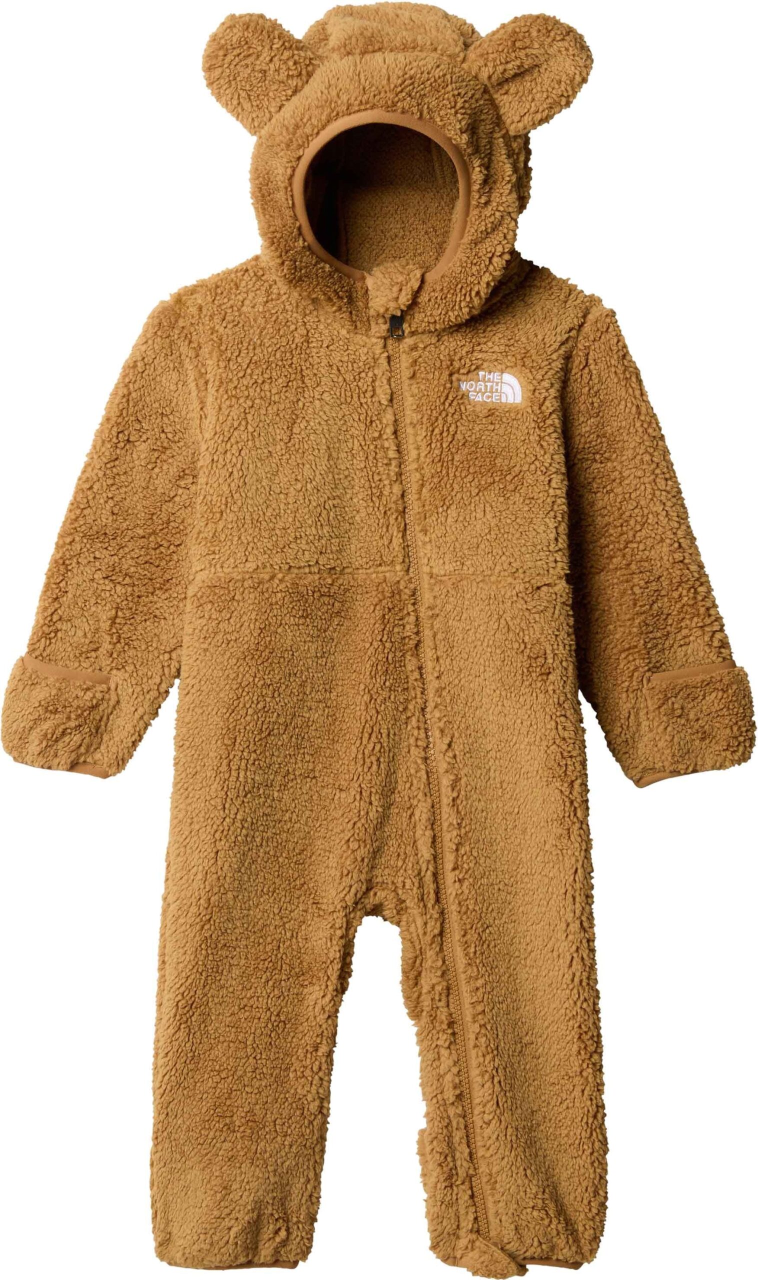 The North Face Baby Campshire One Piece Teddy Brown, combinaison polaire bébé, garde au chaud lors des premiers pas dans la neige grâce à sa capuche doublée et sa fermeture imperméable.
