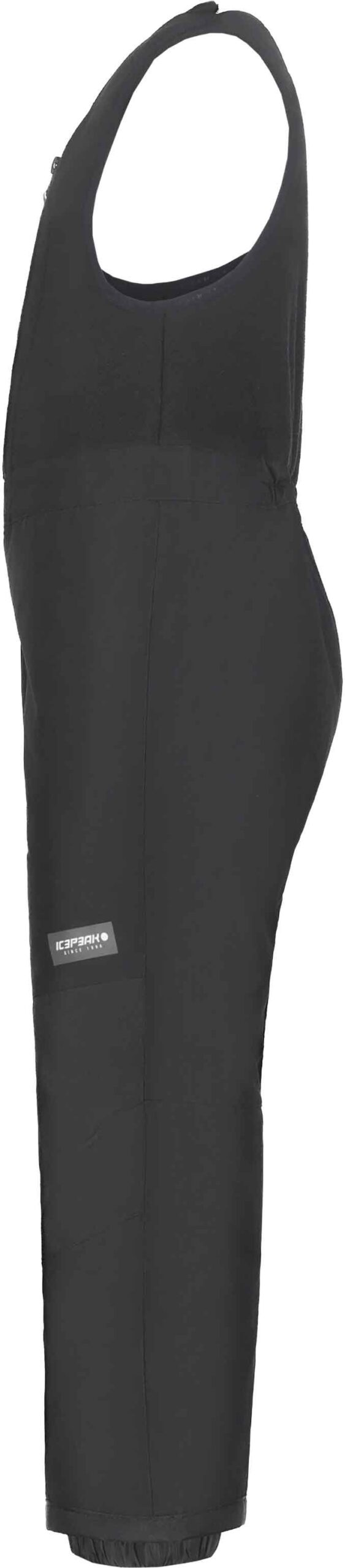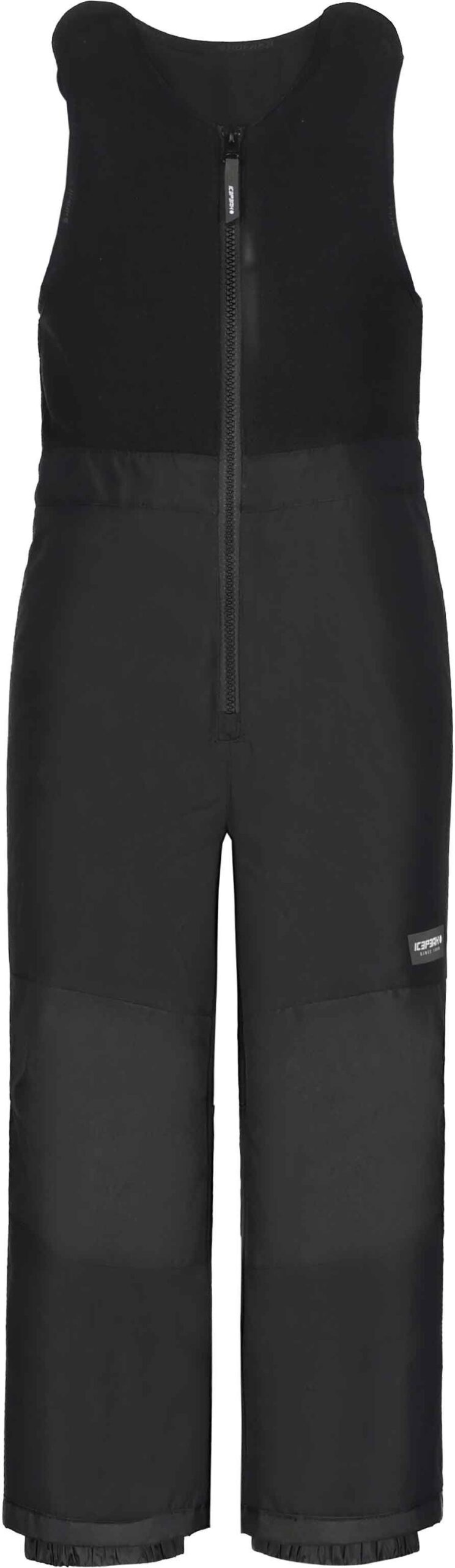 Salopette de ski Icepeak Jiazi Black pour enfant, imperméable, respirante et chauffante avec technologie A.W.S Extreme, taille haute ajustable, guêtres pare-neige et renforts aux jambes.