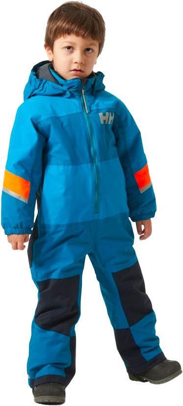 Combinaison de neige Helly Hansen K Rider 3.0 Insulated Suit enfant, coupe-vent et imper-respirante HELLY TECH® Performance, isolée PrimaLoft® Black Eco, genoux articulés, capuche et éléments réfléchissants pour sécurité en montagne.