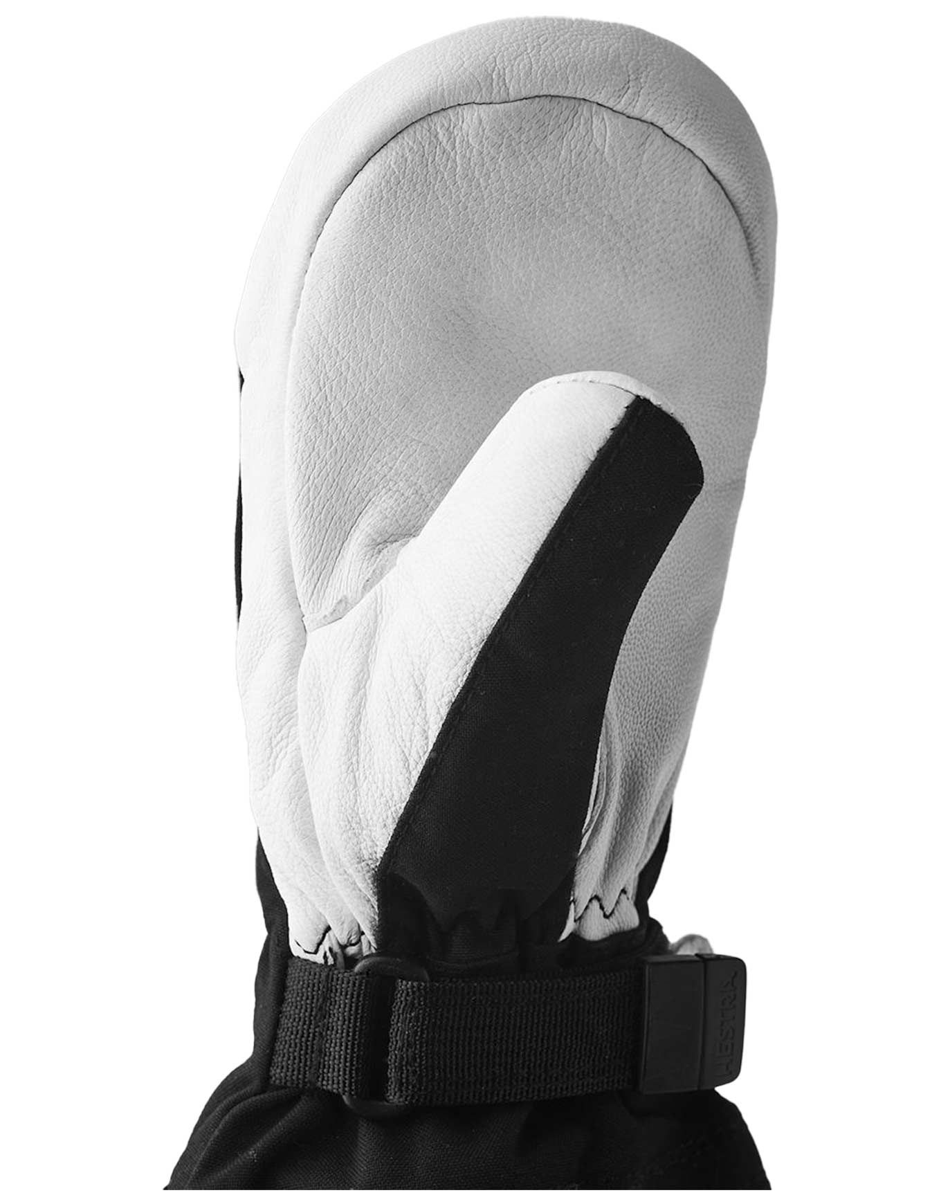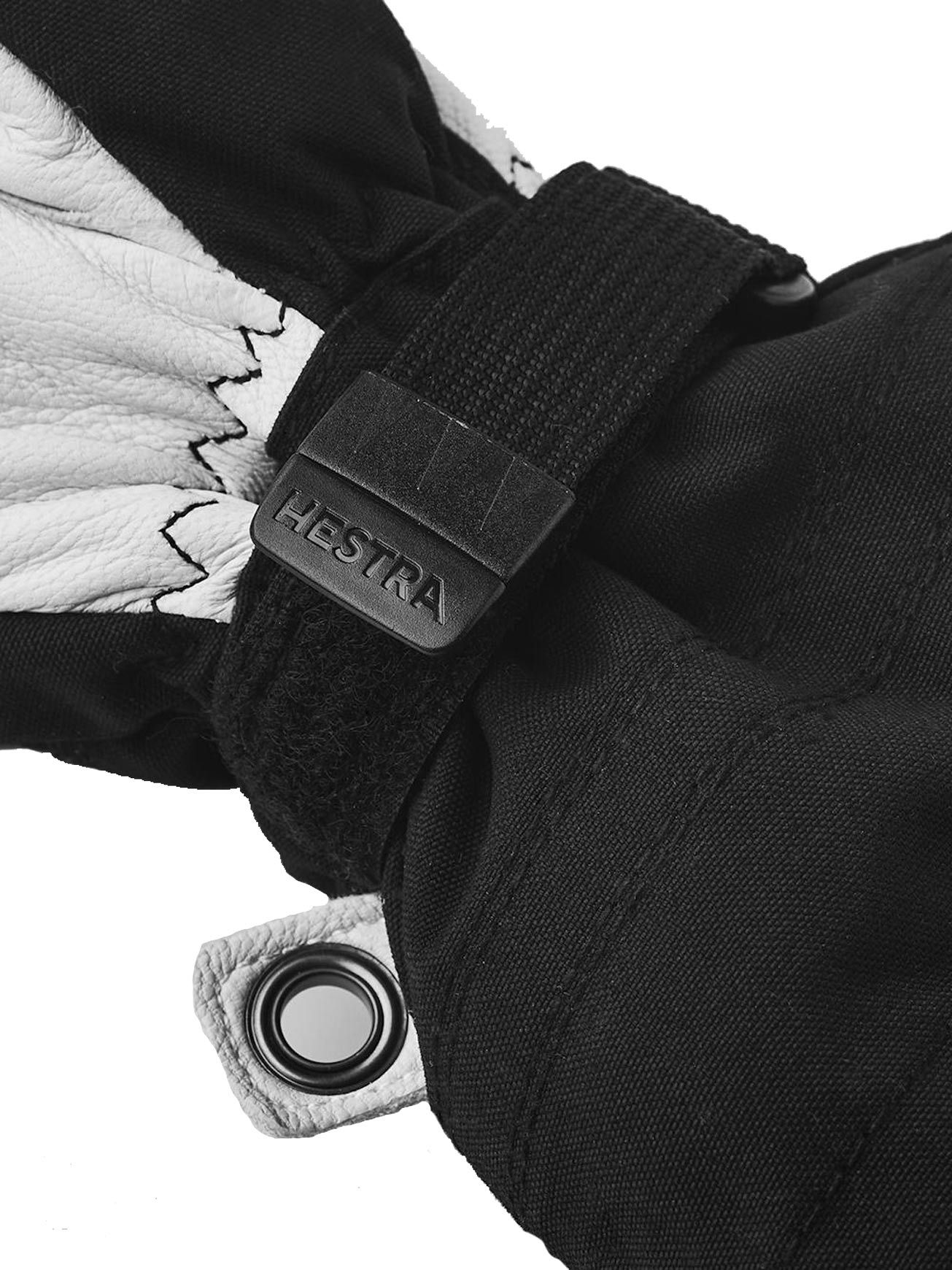 Gants de ski enfant Hestra Army Leather Heli Ski Jr. en cuir résistant, doublure polaire amovible et dragonne de sécurité : mains au chaud et au sec sur les pistes.
