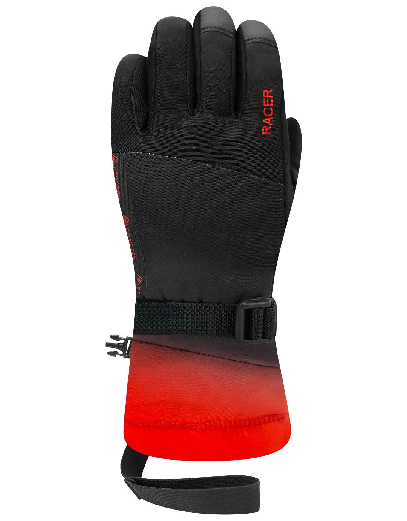 Les gants de ski Giga 6 Black Red de Racer pour enfant intègrent une membrane GORE-TEX imperméable et respirante, une isolation synthétique et des ajustements personnalisables pour garder les mains au sec et au chaud sur les pistes.