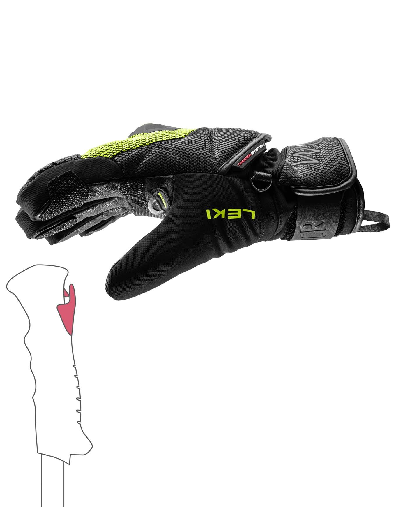 Les gants intègrent le système TriggerL’intégration d’un système de connexion directe avec les poignées Trigger de la marque Leki facilite un déclenchement rapide de la dragonne, renforçant ainsi la sécurité de l’enfant.