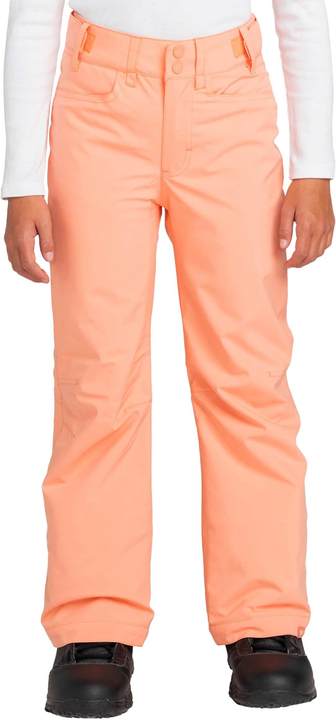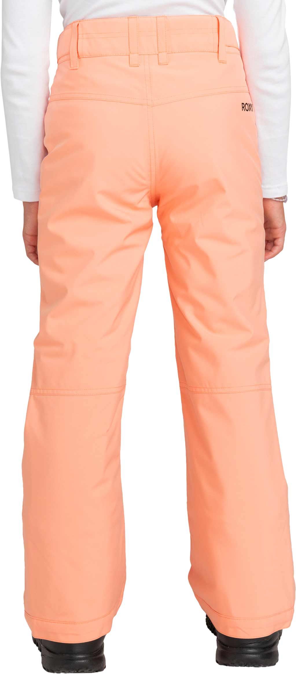 Pantalon de ski Roxy Backyard pour fille en coloris Peach Pink, imperméable et respirant grâce à la membrane DryFlight® et isolé avec WarmFlight® pour une chaleur constante sur les pistes. Taille réglable et guêtres pare-neige intégrées assurent confort et protection.