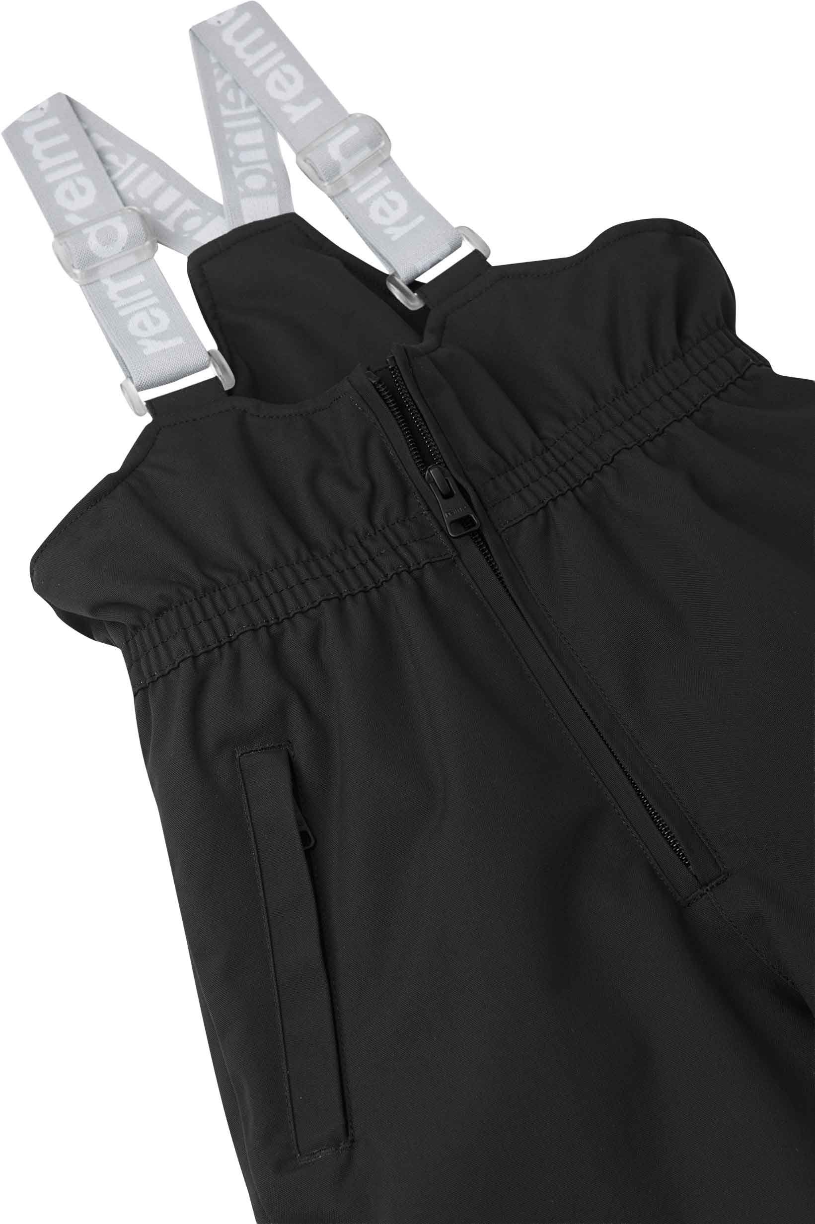 La salopette d’hiver Reima Juoni Black protège les enfants par Reimatec Duraplus déperlant, coupe-vent et respirant à coutures scellées. Bretelles réglables, ourlets ajustables et boucles silicone aux pieds assurent maintien et confort sur la neige.