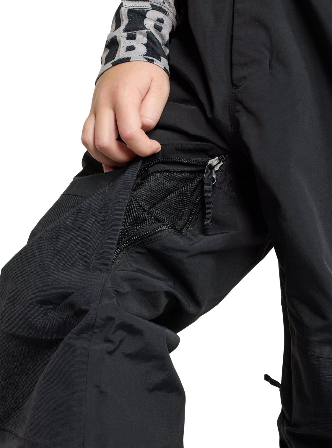 La mobilité est optimisée par des genoux articulés, tandis que les bretelles munies de fermetures auto-agrippantes assurent un port sécurisé et agréable. Des ouvertures zippées, doublées de mesh à l’intérieur des cuisses, offrent la possibilité de réguler la température corporelle par une aération complémentaire, tout en bloquant l’intrusion de neige.