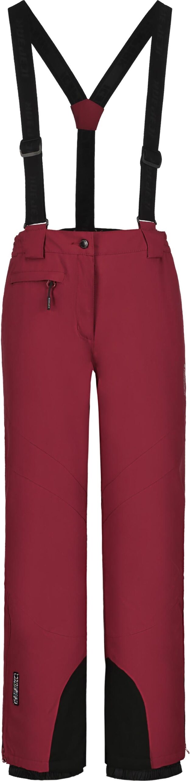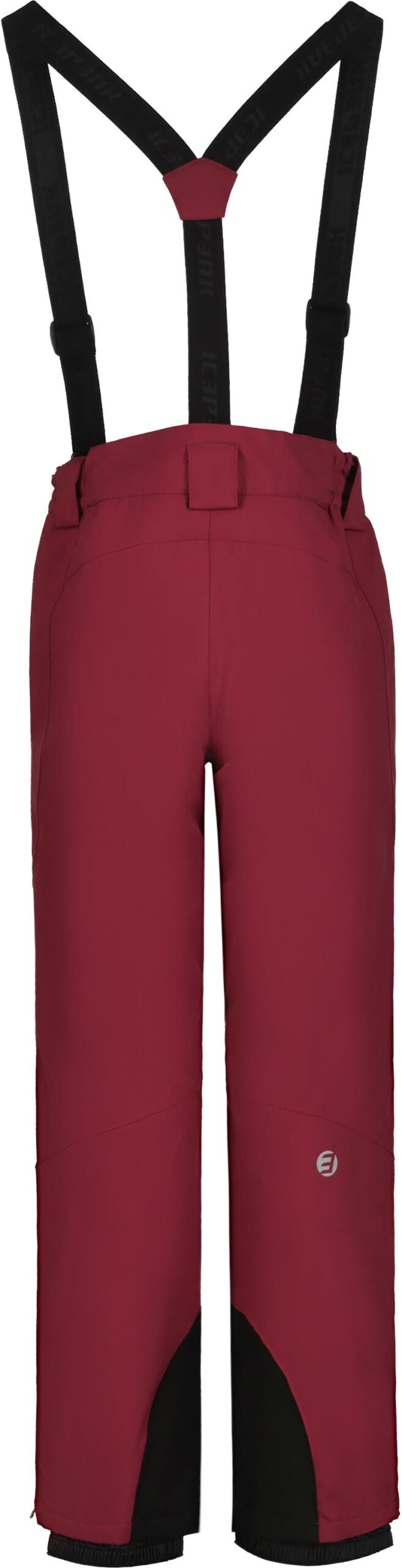 La salopette de ski enfant Lagos Bordeaux d’Icepeak, pantalon 2 couches avec membrane, offre imperméabilité, coupe-vent et respiration pour des journées confortables sur les pistes.