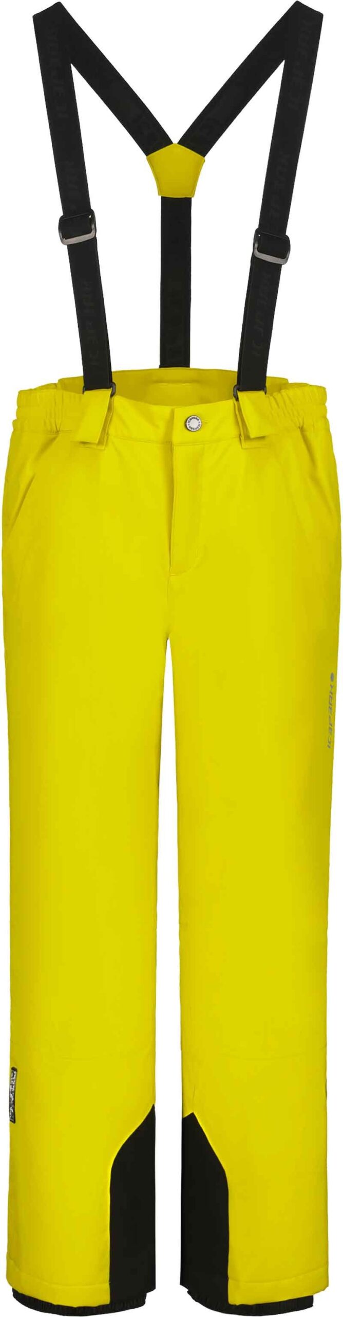 Salopette de ski enfant Icepeak Lisman Olive, 2 couches avec membrane imperméable, coupe-vent et respirante, doublure chaude, coutures étanches, bretelles ajustables et guêtres pare-neige.