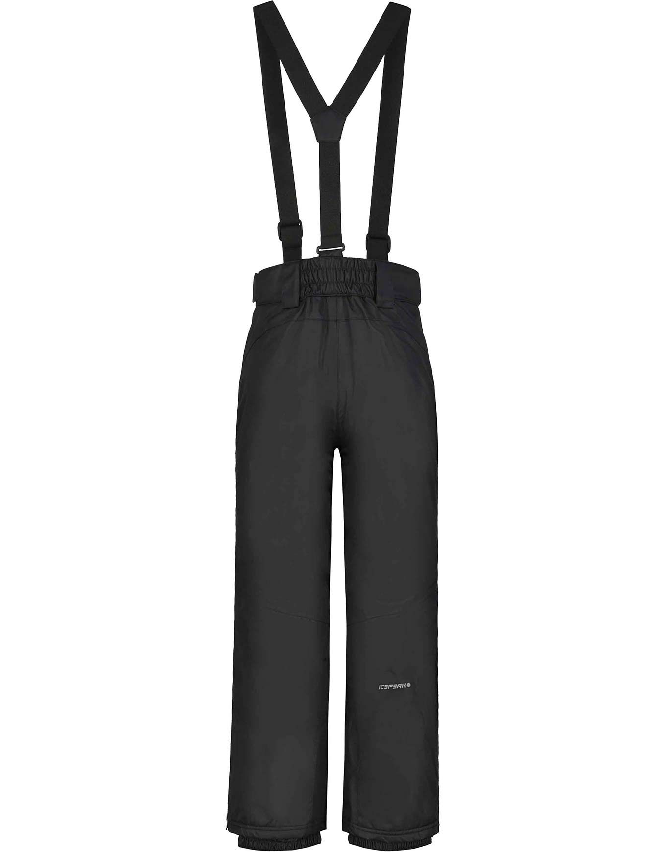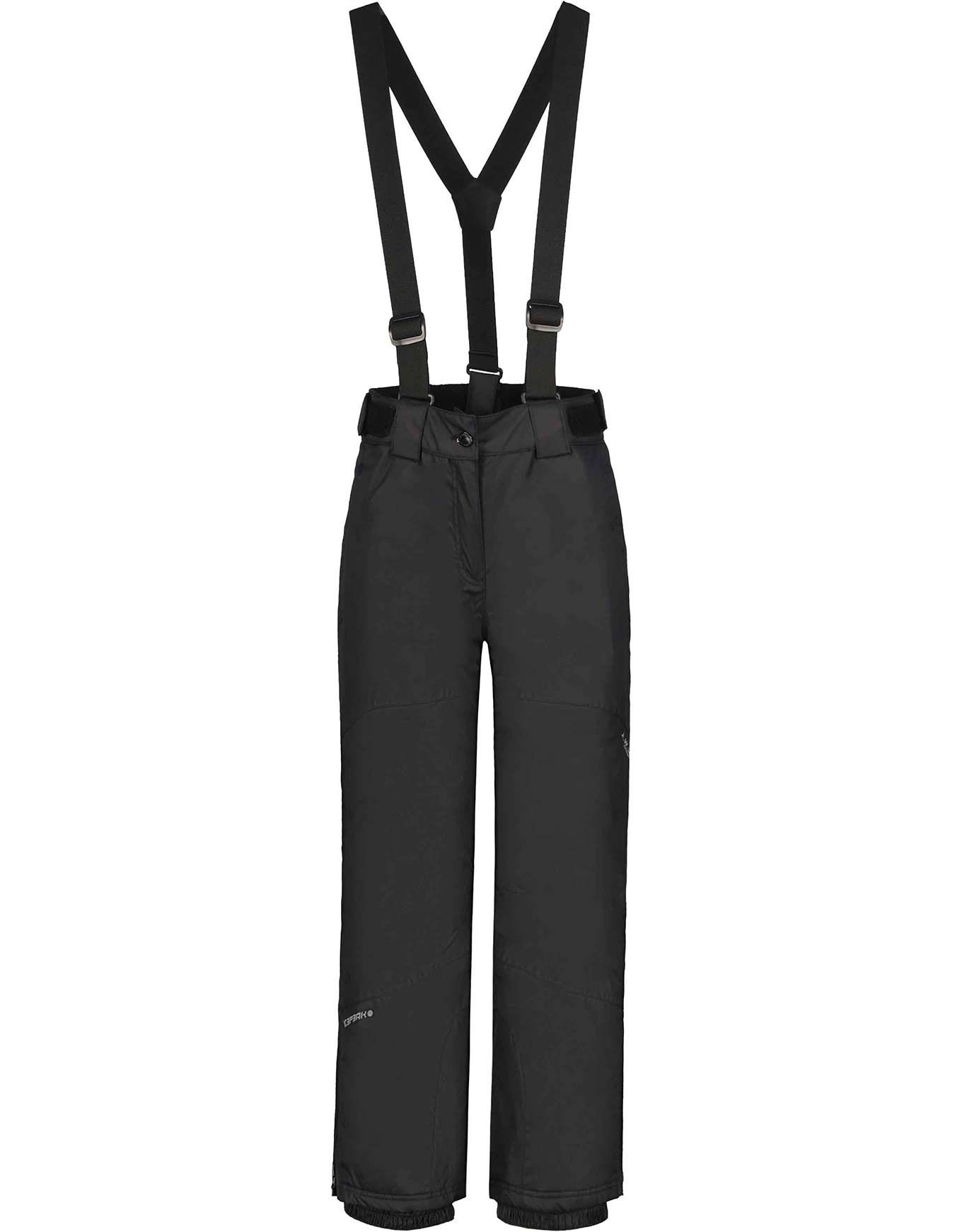 Icepeak Lorena Black, pantalon de ski enfant avec bretelles amovibles, coupe-vent et imperméable grâce aux coutures scellées. Technologie A.W.S Extrême pour une protection thermique fiable, bretelles réglables et zips bas de jambe facilitant l’enfilage.
