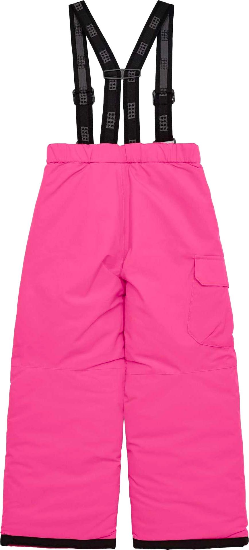 Lego Wear Payton 701 Ski Pants Pink : pantalon ski enfant coupe-vent, imperméable et isolé jusqu’à -15 °C, avec bretelles réglables et guêtres pare-neige.