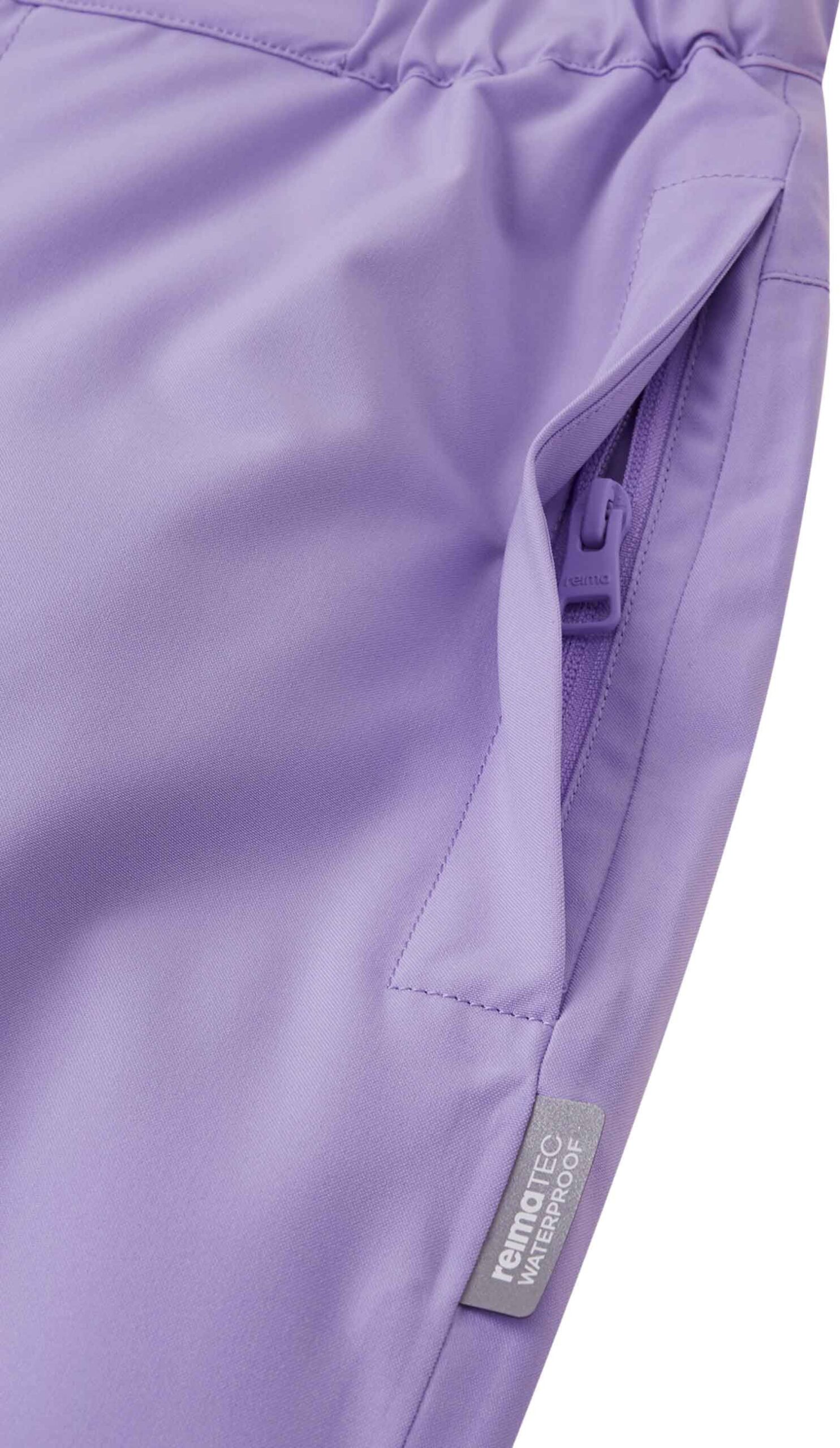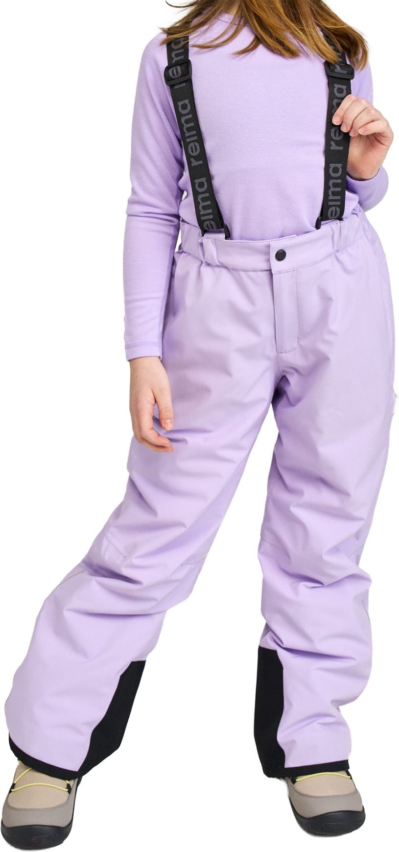 Salopette d’hiver Reima Proxima Blooming Lilac en Reimatec Duraplus déperlant, coupe-vent et respirant avec coutures scellées pour garder l’enfant au sec pendant les jeux de neige.