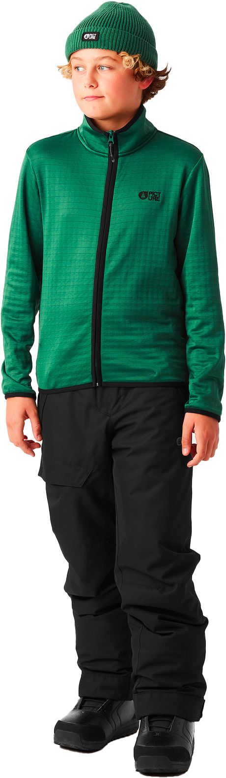Pantalon de ski Time Black Picture Organic Clothing enfant, membrane Dryplay 10K/10K, coutures étanches, isolation Thermal STD recyclée, taille ajustable et système I-Fit évolutif.