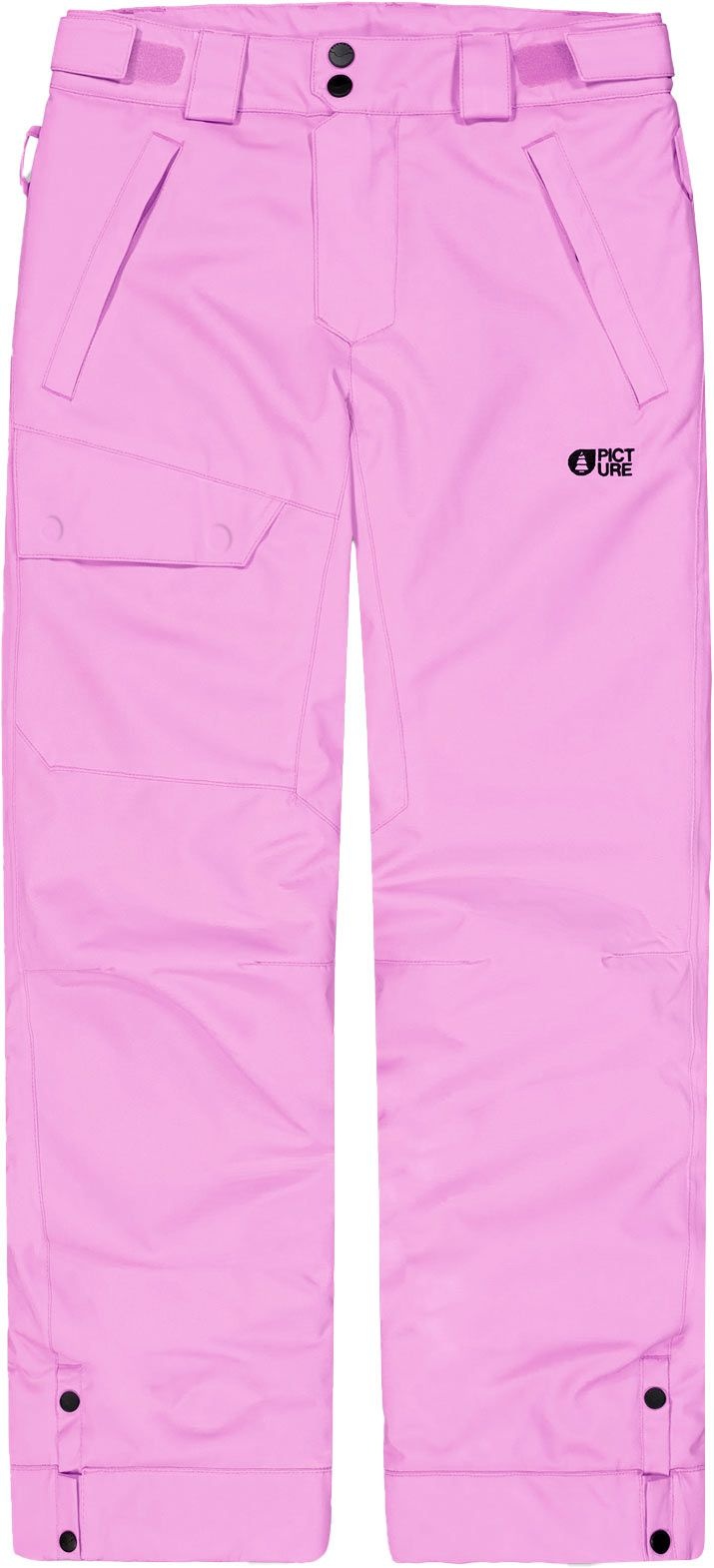Pantalon de ski Time Super Pink Picture Organic Clothing enfant, imperméable et respirant 10K/10K, membrane Dryplay, coutures étanches, isolation Thermale STD recyclée, taille ajustable et système I-Fit.